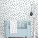 Tapet från ESTAhome. Den här gulliga tapeten med grafiskt motiv i vintage gråblått ger en varm, glad och livfull stämning i barnrummet. Släpp loss din och dina barns fantasi och skapa ett fantastiskt rum att drömma och leka i.