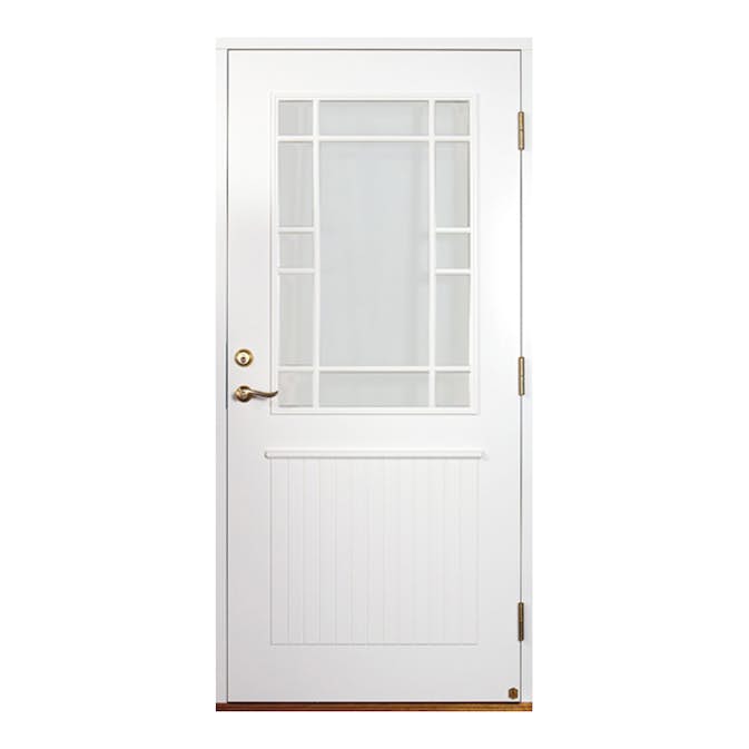 Ytterskivor i vattentålig HDF. Glaslister och spröjsar är hantverksmässigt tillverkade av riktigt trä, glaslisterna är sammanfogade med gerade hörn och spröjsarna är ihopsatta på gammaltvis. Detta ger ett vackert utseende med skarpa hörn fritt från maskinfrästa radier.