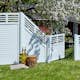 Skärm från PLUS som har grundmålats i två lager med vit färg. Lämplig för avskärmning i trädgården. Tillverkad av fungicid-behandlad furu/gran.
