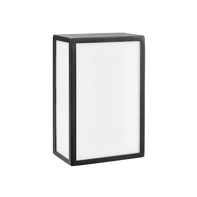 Tidlös retroarmatur i svartlackerad stål. Opalvitt polykarbonat. Tillhör en produktfamilj med både stolpar, tak och fler väggmodeller. Finns även med härdat klart glas. Levereras utan ljuskällor.