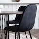 Det runda matbordet Stone har en läcker Skandinavisk design som faller många i smaken. Bordet har en vacker brunfärgad bordsskiva i MDF med faner och en dekorativ cylinderformad stomme i svart metall. Stolen har en helklädd design med en rundad rygg och sits i svart sammetstyg med mjuk stoppning och ben i svart pulverlackerad metall.
