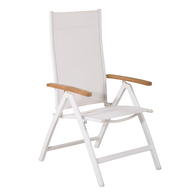 Positionsstol Perla från Venture Home. Tillverkad i aluminium och armstöd i teak. Ryggstödet går att fälla i 5 olika lägen. Fungerar utmärkt som del i en matgrupp eller ensam som en vacker detalj. Ingen montering krävs.