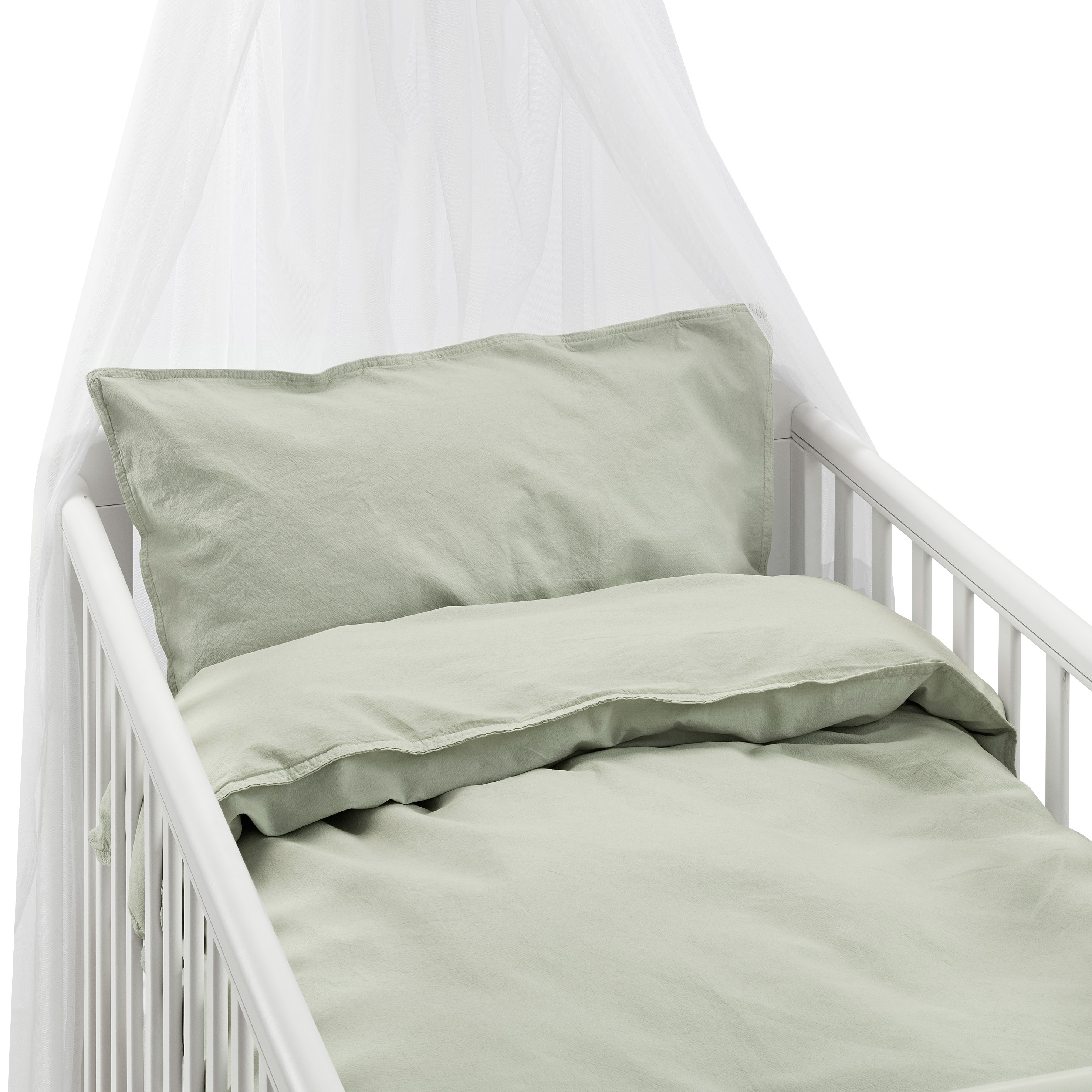 Bäddset bestående av ett örngott och ett påslakan i passande storlek för spjälsäng. Skön bomullskvalitet med dubbelstickade kantsömmar och en snygg tvättad look. Humble-serien finns i flera olika färger och mått.