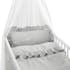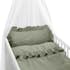 Bäddset tillverkat i fin bomullspercale som känns svalt och skönt att sova i. Örngottet har volanger på tre sidor och påslakanet har en volang på framsidan. Passande storlek för spjälsäng. Finns i flera fina färger.