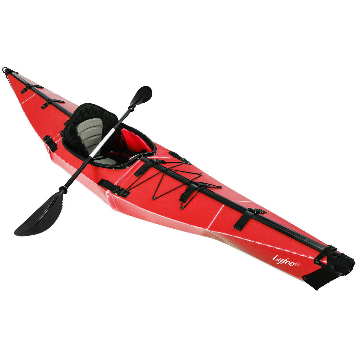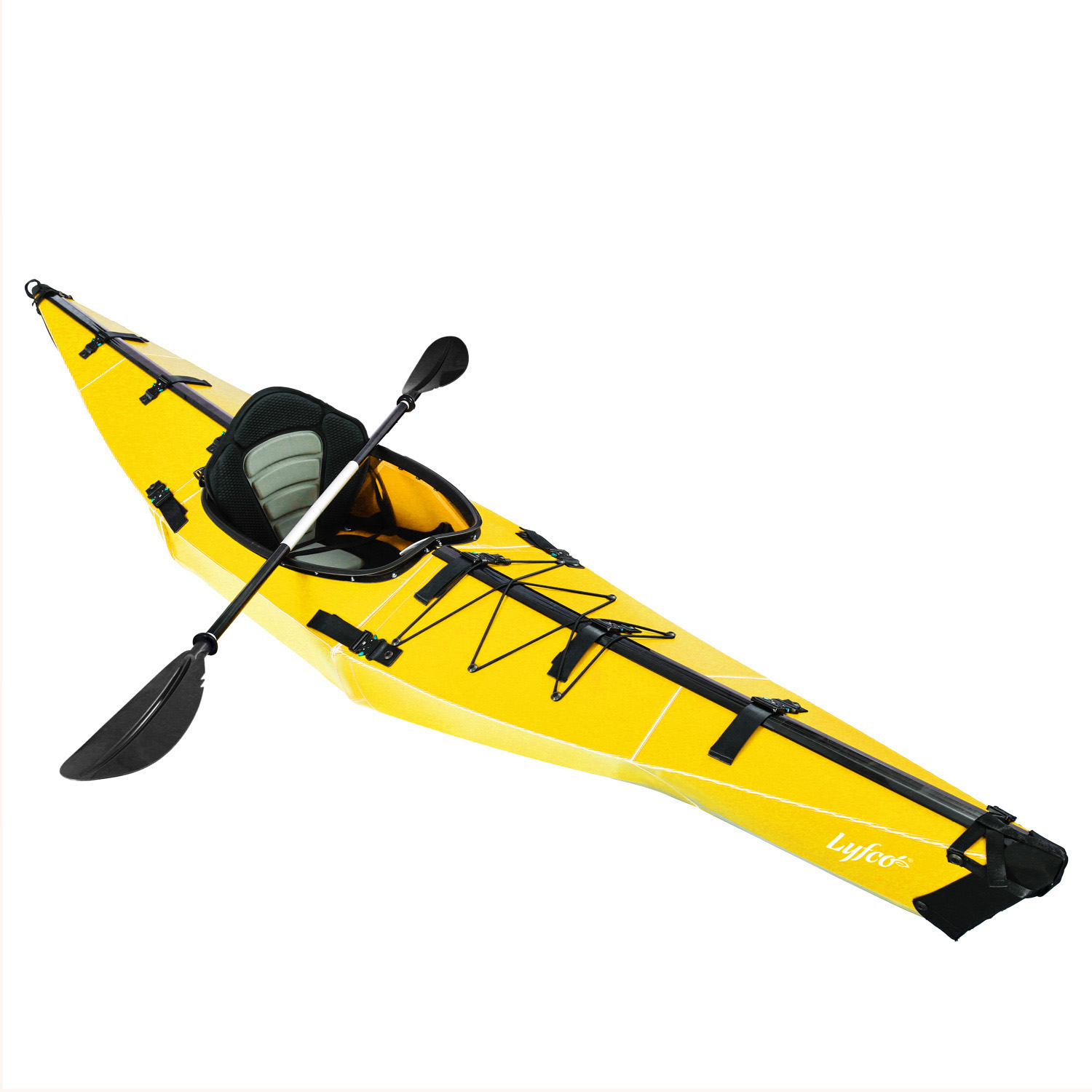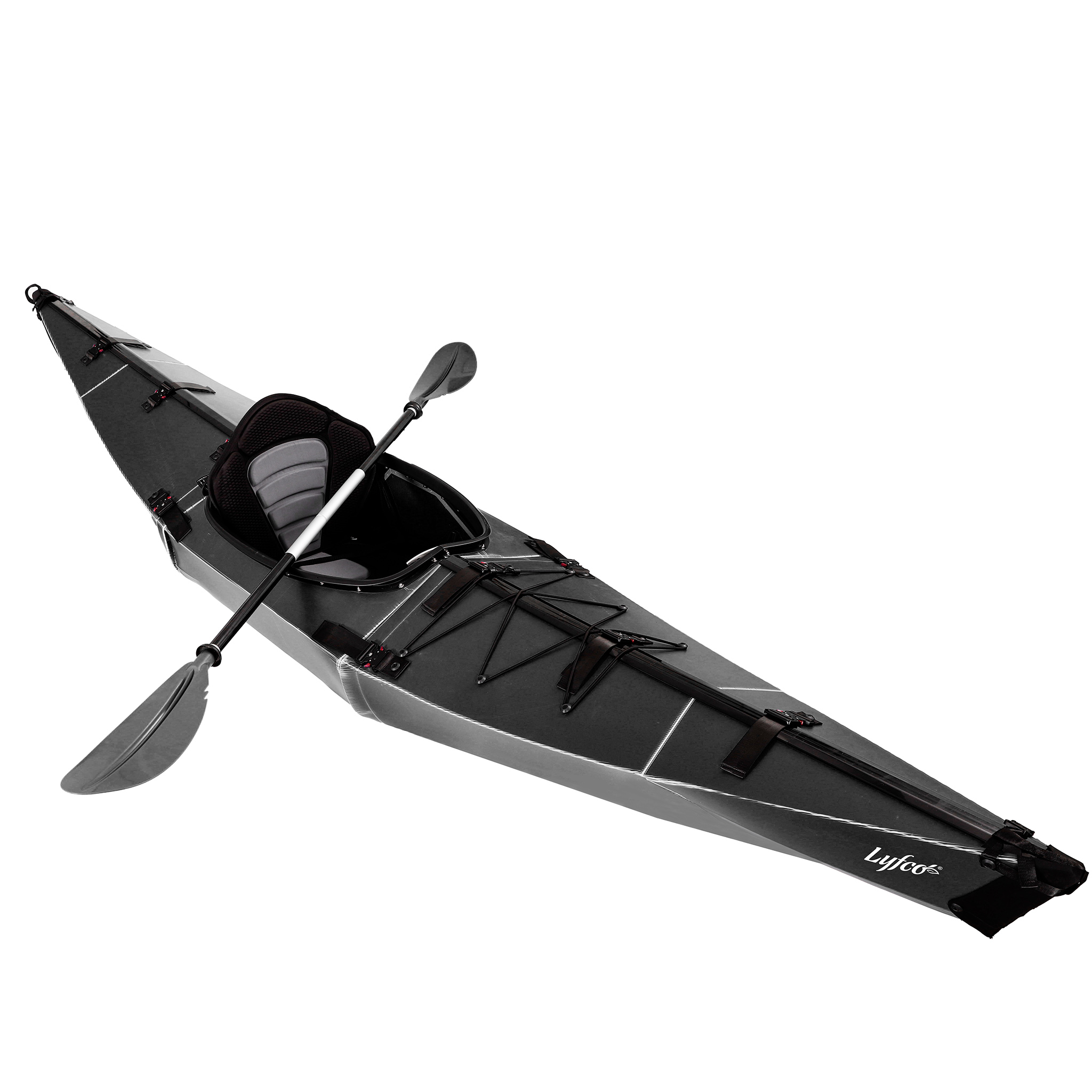 Paddel och en smidig förvaringsryggsäck ingår och kajaken är utrustad med ett ergonomiskt säte som gör att du sitter bekvämt även under längre paddelturer. Kajaken sätts enkelt ihop med hjälp av spännen, remmar och vattentäta PVC-lister. Själva uppmonteringen tar endast 3-4 minuter. När du har paddlat färdigt viker du lika snabbt ihop den igen. Kajaken kan vikas upp och ihop upp till hela 12 000 gånger utan ta skada, vilket visar på utmärkt kvalitet och hållbarhet. Den maximala hastigheten är individuell beroende på fysik men kan nå upp till mellan 7 och 12 km/tim. Den maximala användarvikten är 150 kg.