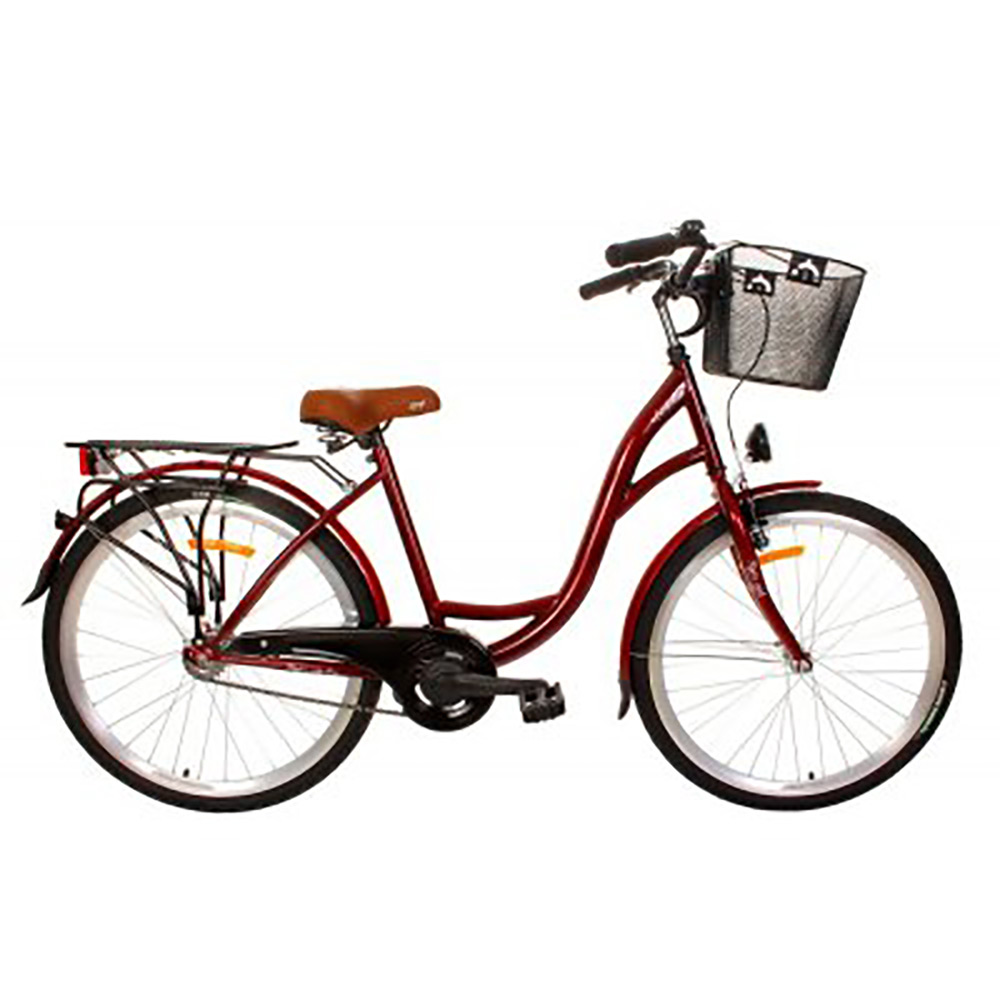 Denna klassiska damcykel tar stor inspiration från Nederländerna och ger dig alla förnödenheter samt en bekväm sittställning under cykelturen.