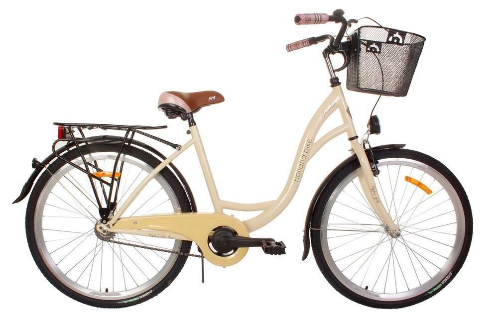 Holland gör sig utmärkt som pendelcykel. Pakethållare, stänkskärmar, cylinderlås och cykelkorg ingår.