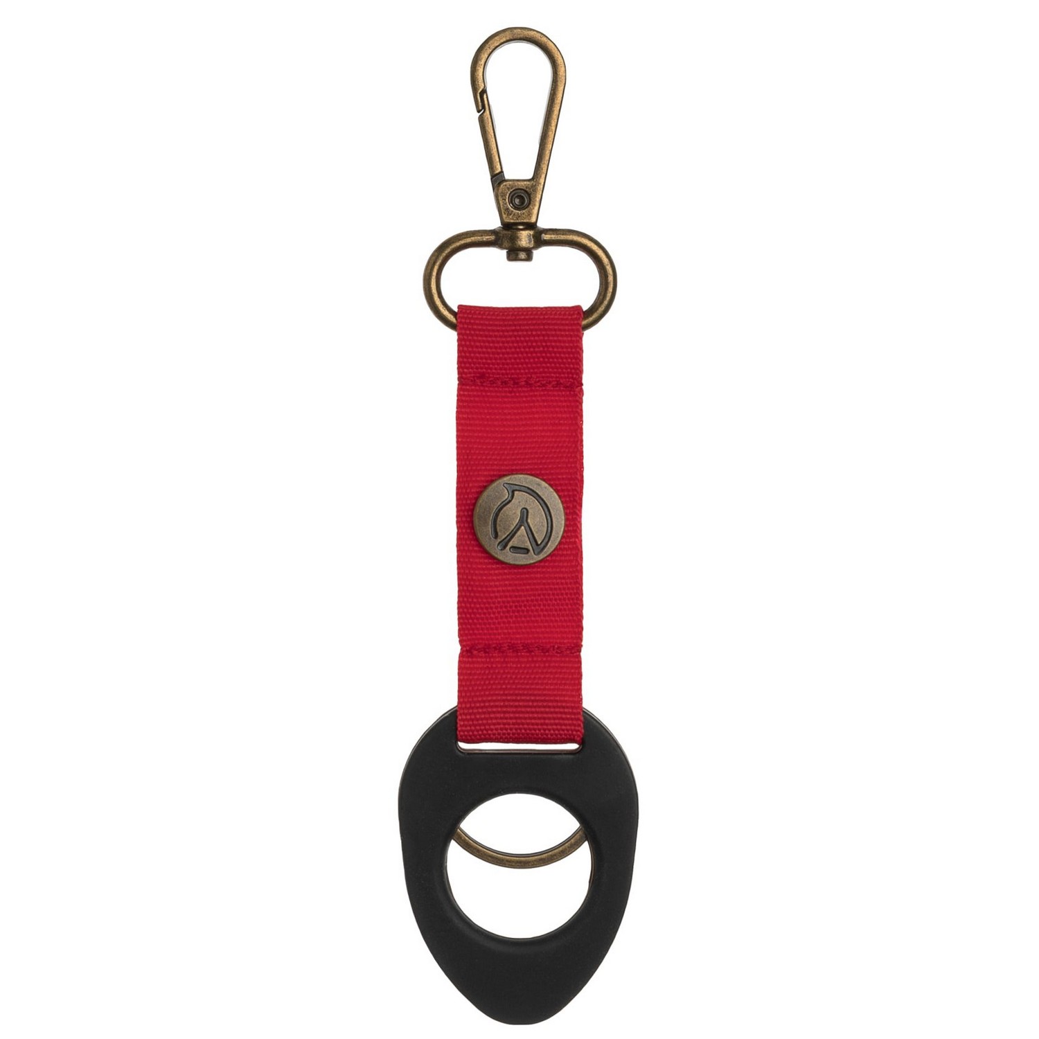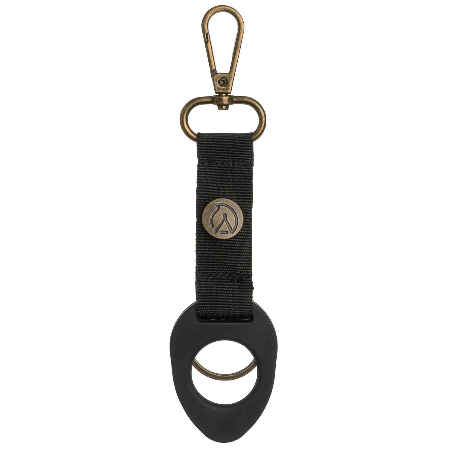 Denna behändiga flaskhållare är utrustad med en klämma som enkelt fästs i en bältesögla, ryggsäck eller väska. Den flexibla silikonhållaren passar de flesta flaskkorkar, vilket gör den till den perfekta följeslagaren för alla dina äventyr. Flaskhållaren har även en nyckelring.