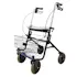 Säkerheten garanteras av de kraftfulla handbromsarna, som kan låsas genom att trycka ner dem. Rollatorn väger 13 kg och kan bära upp till 110 kg. Bänkens höjd är 60 cm. Höjden på handtagen kan justeras enkelt och snabbt!