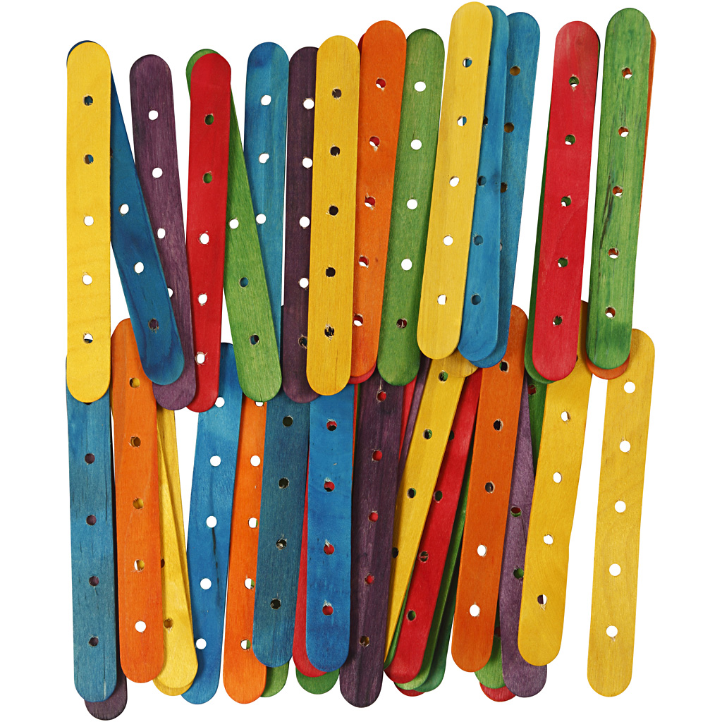 Platta konstruktionspinnar av trä med genomborrade hål till konstruktion och små byggprojekt.