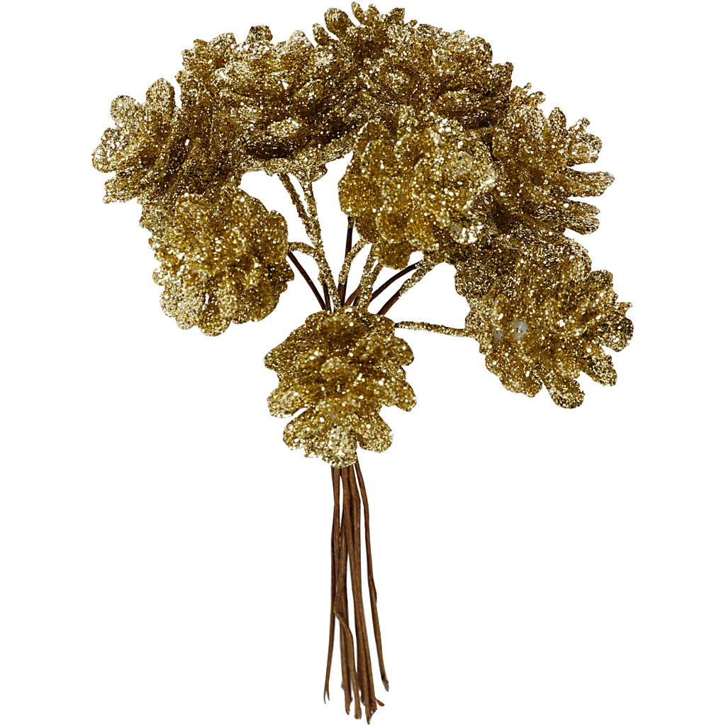 Stjälk med dekorativa kottar av polyfoam.