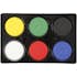 Blockfärg/temperablock. Färgerna är inbördes blandbara. Penslarna rengöres i vatten.