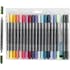 Sortiment av permanent textiltusch med dubbel, fast filtspets. Skakas före användning. Strykfixeras och tål därefter mild tvätt vid 40 °C. Före användning säkras färgtillförseln till spetsen genom ett skaka tuschen kraftigt några gånger, med spetsen nedåt.