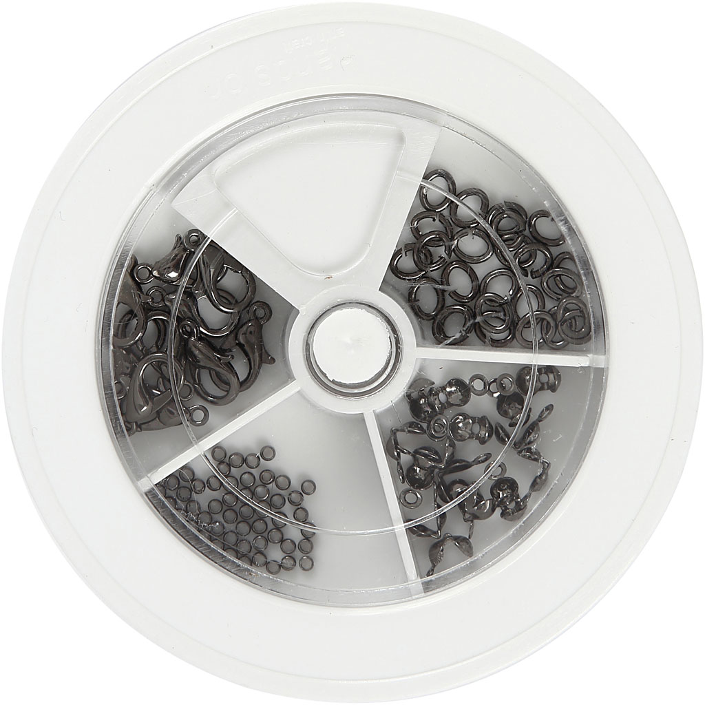 Sortiment med allt du behöver av smyckebeslag till låsning och montering av smyckewire.