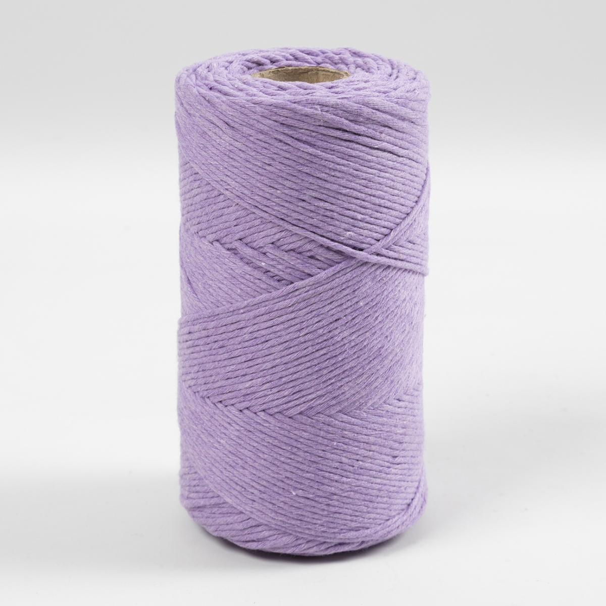 Makramégarn i enkel tvinnad kvalitet i 80% återanvänd bomull och 20% polyester. Perfekt till knytning av mindre projekt som drömfångare, örhängen, nyckelringar och liknande. Enkelt tvinnat garn är perfekt till projekt, där snöret ska "borstas" som effekt.