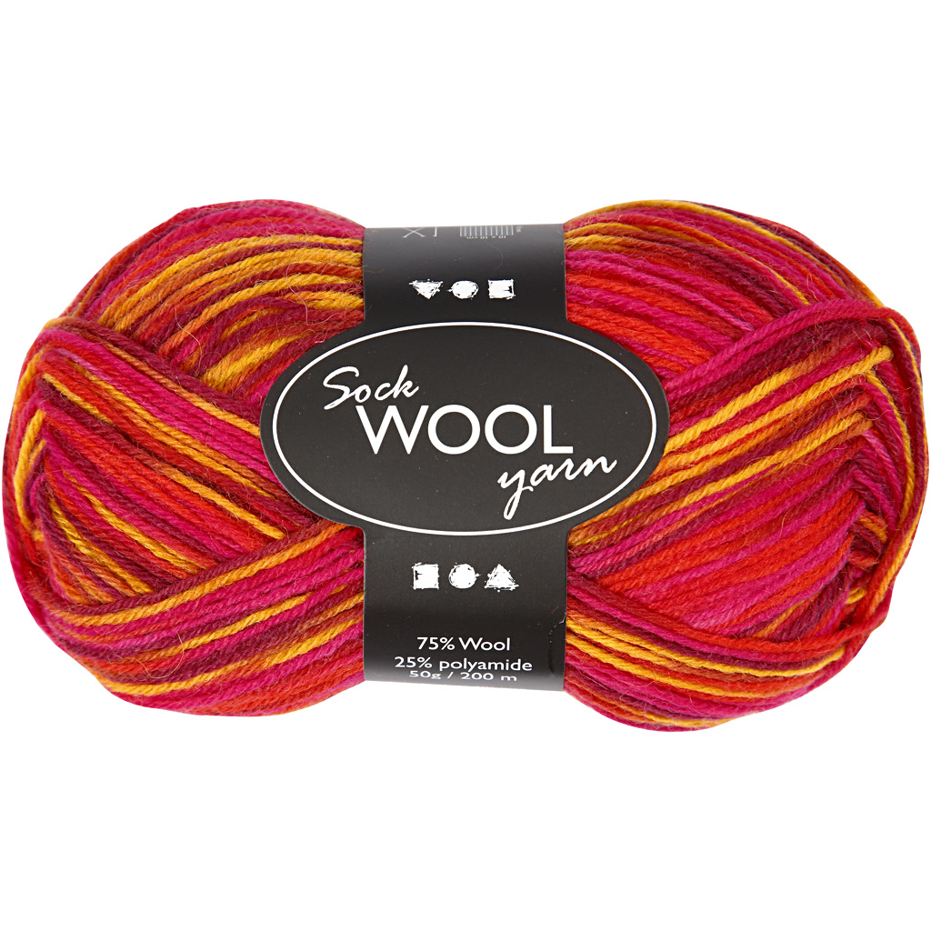 Superwash strumpgarn av 75 % ull och 25 % nylon.