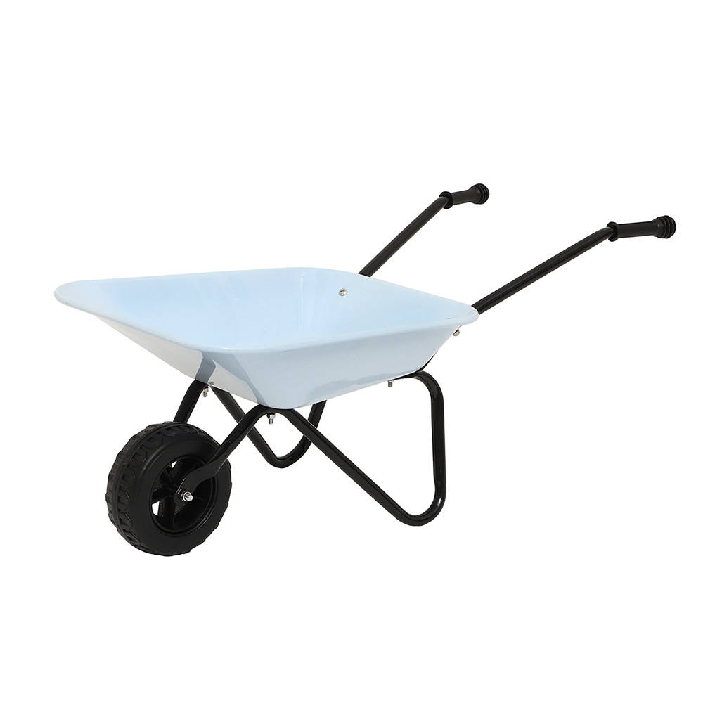 En skottkärra för den lilla trädgårdsmästaren. Med denna barnskottkärra kan de mindre barnen leka och känna sig delaktiga i trädgårdssysslorna. Skottkärran har plåtkorg och rörunderrede med ergonomiska gummihandtag.