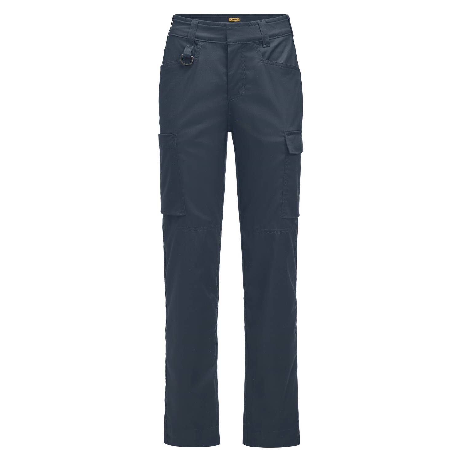 Servicebyxa med stretch. Dold knapp för "non-scratch" design. Benficka på högersida med plats för tumstock och benficka på vänster sida med ficklock med plats för pennor. D-ring i hällan fram för ID-korthållare. Knäskyddsficka på insidan.