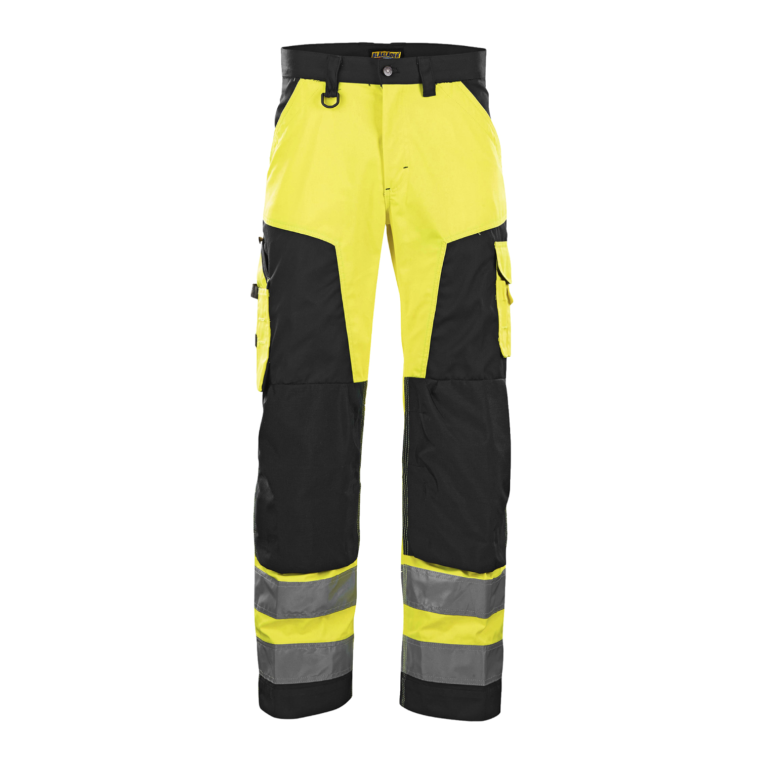 Varselbyxa från Blåkläder i mycket hållbart och lätt material. Det slittåliga materialet gör byxan till det ultimata valet för hårt arbete. Försedd med hällor, varav en med D-ring. Två hällor i sidorna med knapp för hammarhållare och infällbar ID-kortsficka. Cordura-förstärkt på knän och fickor.