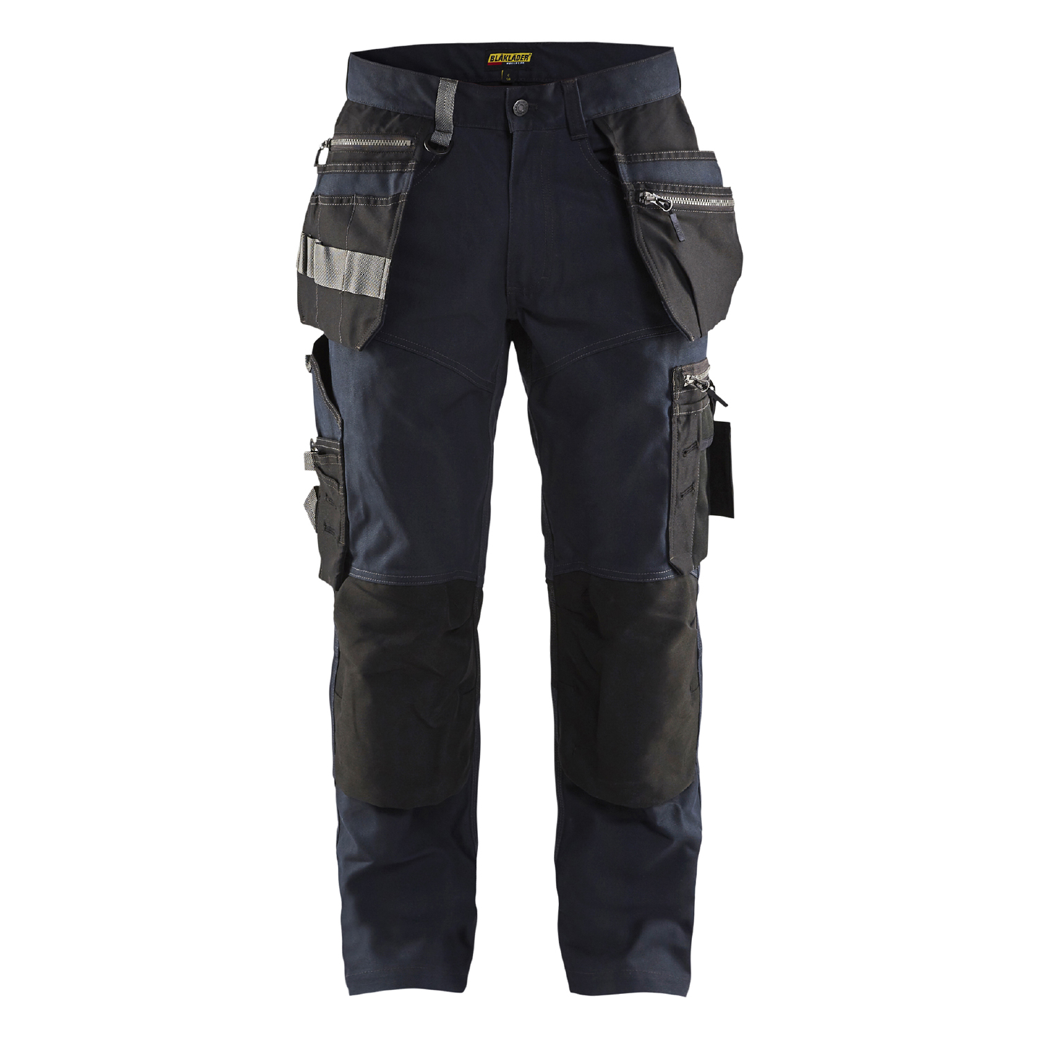 Hantverksbyxa från Blåkläder med krav på slitstyrka, komfort och praktiska detaljer. Detta är en byxa med smalare passform och material i canvas-tyg som är kraftigt men ändå lätt och luftigt.Stretchpaneler i ok och ficköppning med förstärkta knäfickor i CORDURA®-stretch gör byxan smidig och perfekt anpassad för rörliga arbetsuppgifter. Försedd med ett flertal smarta och funktionella detaljer, som extra fickor med dragkedja för säker förvaring, lättåtkomlig telefonficka i stretchmaterial som passar de flesta mobiler och svarta diskreta reflexdetaljer på vaden.