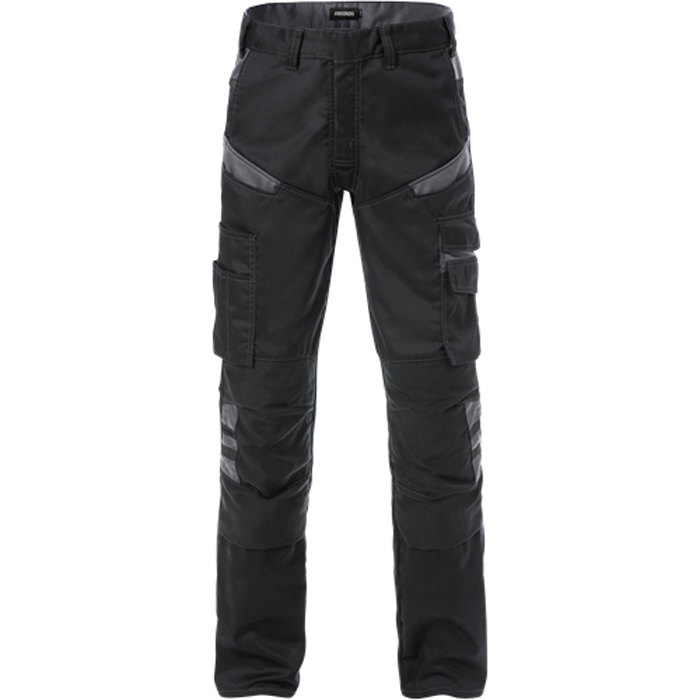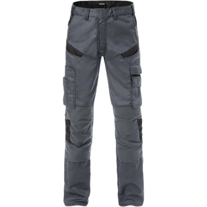 Byxa 2555 STFP från Fristads har en modern passform och passar bra för arbetare inom service- och industrisektorn. Tillverkad av ett lätt och slittåligt material med mekanisk stretch som ger bekväm rörelsefrihet. Utrustad med knäfickor och har diskreta mörkgrå reflexdetaljer för ökad synlighet. Godkänd för industritvätt.
