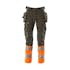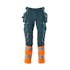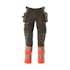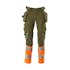 Stretchtyget är elastiskt åt alla håll, vilket ger en unik rörelsefrihet, där inget stramar eller irriterar. Det multifunktionella stretchtyget kombinerar låg vikt med mycket hög slitstyrka, samtidigt som det är vattenavvisande. Hängfickor med Kevlar® och CORDURA®-förstärkningar. Avtagbara hängfickor. Effektiv ventilation vid benet via blixtlås på baksidan av låret. Tumstocksfickor med Kevlar®-förstärkningar – särskilt motståndskraftiga mot spetsiga och skarpa föremål. Knäfickor i tvåvägs elastisk CORDURA® som ger extra rörelsefrihet vid knästående arbete. Knäfickorna kan justeras så att knäskydden är placerade optimalt i förhållande till dina knän. Samcertifierade för användning med MASCOT:s knäskyddstyp SHORT eller LONG, eftersom knäskyddsfickan kan höjdjusteras.