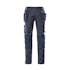 Slitstarka trenålssömmar på ben och i skrev förlänger produktens livslängd. Den låga skärningen med formskuren linning ser till att byxorna följer och stöder alla kroppens rörelser. Hängfickor i CORDURA® som är justerbara och har extra fickor till verktyg. Telefonficka integrerad i höger framficka. Av slitstark CORDURA® – med öppning för knäskydd från ovansidan och med lucka så att inte smuts samlas. Samcertifierade för användning med MASCOT:s knäskyddstyp SHORT eller LONG, eftersom knäskyddsfickan kan höjdjusteras.