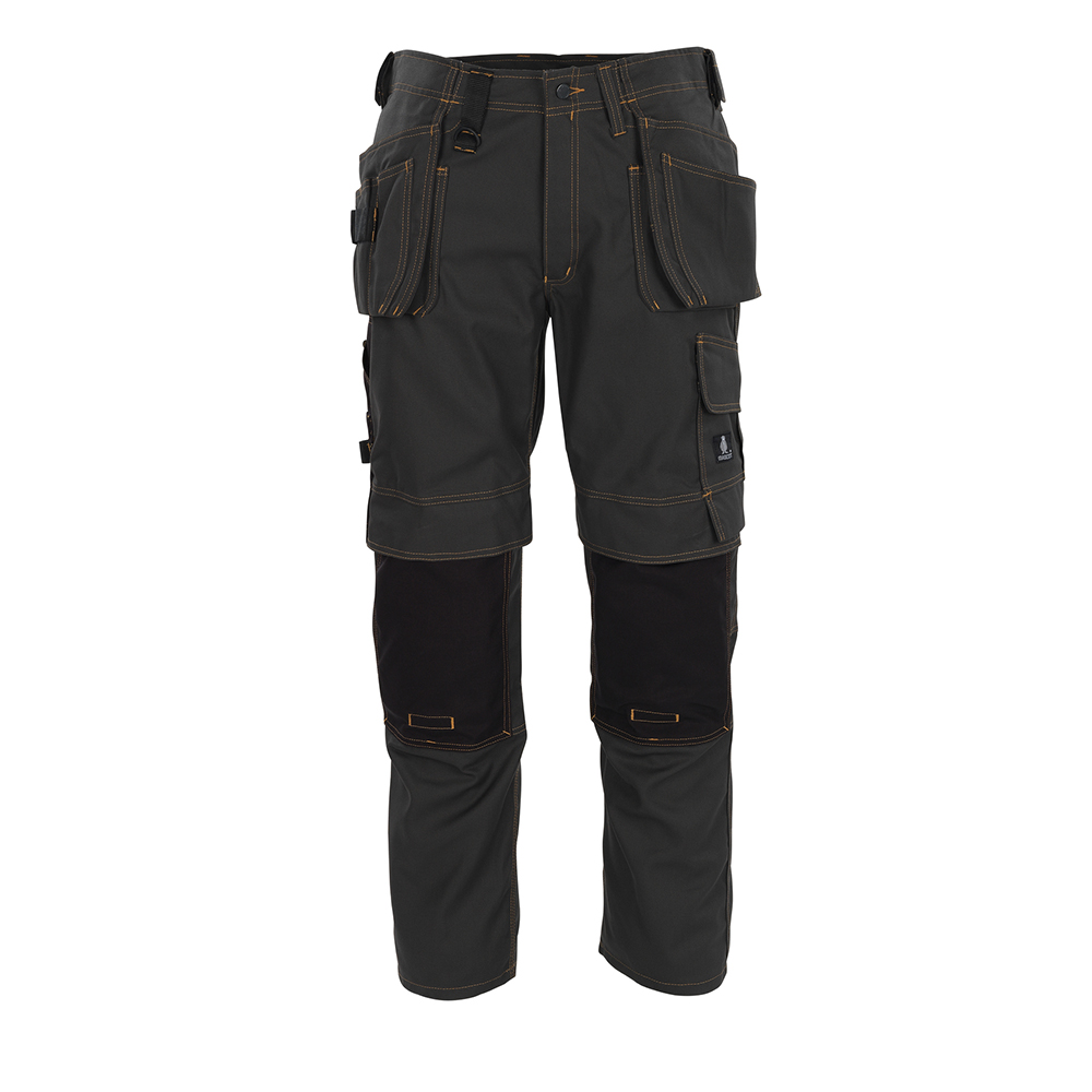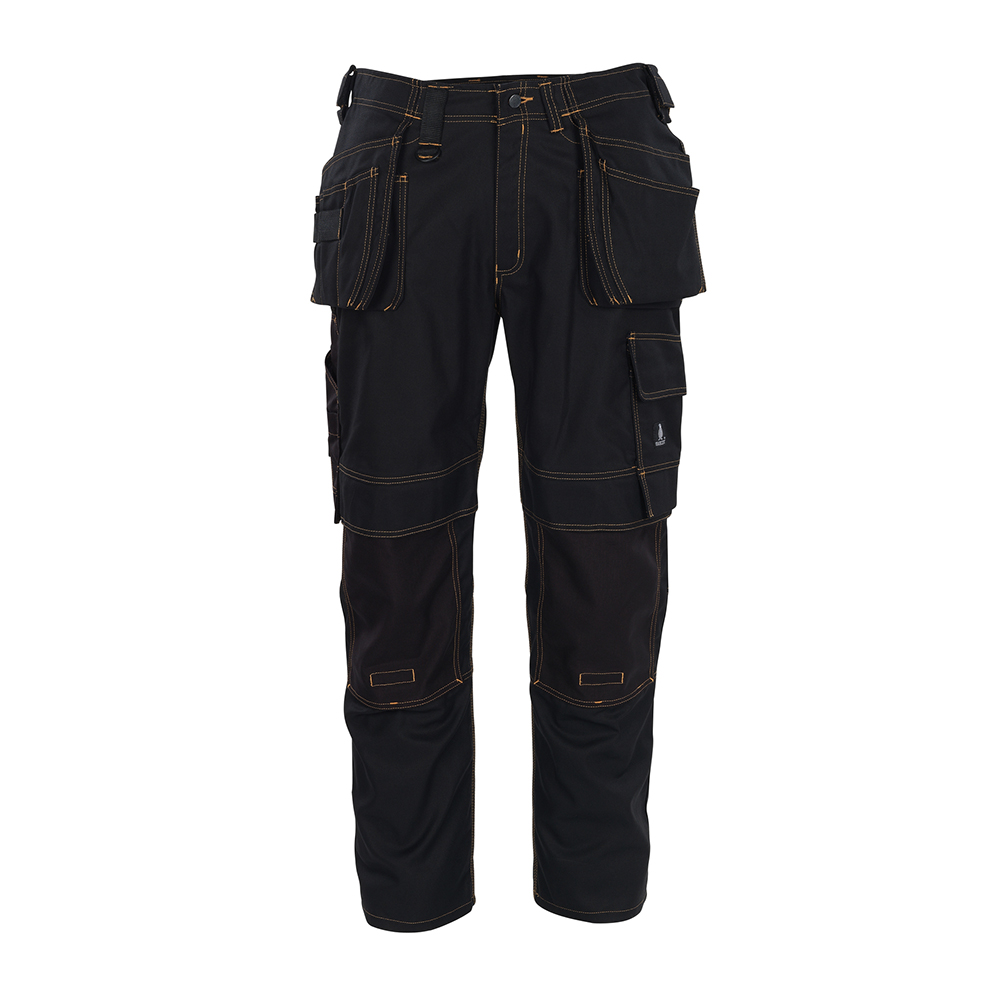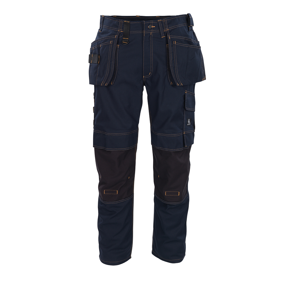 Tvånålsstickningar och trenålsstickningar på benen och i grenen. Låg midja och formskuren linning. Byxbenen är ergonomiskt formade. Bältesstroppar. D-ring. Gylf med blixtlås. Verktygsstropp på båda sidor av linningen. Hängfickor med förstärkningar, extra fickor och verktygsstroppar. Öppning till hängfickor. Fickor på framstycket. Bakfickor med förstärkningar, lock och kardborreband. Hammarstroppen är justerbar. Benficka med telefonficka och lock med kardborreband. Tumstocksfickan är CORDURA®-förstärkt och har en liten ficka utanpå. Pennficka. Knapp för fastsättning av kniv. Justerbara knäfickor i slitstark CORDURA® (500 D) med ficklock och öppning ovanifrån. Kontrastsömmarna är orange. Reflexeffekter. Vi rekommenderar 00718-100, 00418-100, 50454-916 & 20118-915 knäskydd till den här modellen. Samcertifierade med knäskyddstyp SHORT eller LONG enligt EN 14404.
