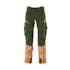 Fluorescerande kontrastfärg och med reflexer. Har en vattenavvisande yta. Tvåfärgat. Ultimate stretchtyg med låg vikt och bra slitstyrka. Tvånålsstickningar på benen och i grenen. Låg midja. Knäppningen är dold. Byxbenen är ergonomiskt formade. Bältesstroppar. Gylf med blixtlås. Fickor på framstycket. Bakfickor med lock. Bakfickor med förstärkningar. Dold hammarögla i höger sida. Förberedd för hängfickor 19450-126 som sätts fast med knappar. Tumstocksfickor med Kevlar®-förstärkningar. Fickor med lock på framsidan av låret. Justerbara knäfickor i mycket slitstark CORDURA® (1000 D). Enkel individuell justering av knäficka höjd. Benficka med fodrad telefonficka, dold stängning med tryckknapp och inbyggd ID-kortshållare. ID-kortshållaren är avtagbar. Lodrätt blixtlås med möjlighet för ventilation på baksidan av låret. Med tryckeffekter. Innerbenslängden kan ökas med 3 cm genom att ta bort den invändiga röda sömmen vid foten. Vi rekommenderar 00718-100, 00418-100, 50454-916 & 20118-915 knäskydd till den här modellen. Samcertifierade med knäskyddstyp SHORT eller LONG enligt EN 14404.
