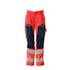 Lady passform DIAMOND. Fluorescerande och med reflexer. Tvåfärgat. Delar av produkten är av stretchtyg. Kombination av lättviktigt tyg kvalitet 236 och ULTIMATE STRETCH kvalitet 511. Tvånålsstickningar på benen och i grenen. Låg midja. Knäppningen är dold. Stängning med blixtlås. Byxbenen är ergonomiskt formade. Bältesstroppar. D-ring. Fickor på framstycket. Bakfickor med förstärkningar. Hammarstroppen är justerbar. Tumstocksfickan är förstärkt. Fickor med lock på framsidan av låret. Justerbara knäfickor i slitstark CORDURA® (500 D). Enkel individuell justering av knäficka höjd. Benficka med telefonficka och lock med dolda tryckknappar. Med tryckeffekter. Förberedd för hängfickor 19450-126 som sätts fast med knappar. Innerbenslängden kan ökas med 3 cm genom att ta bort den invändiga röda sömmen vid foten. Vi rekommenderar 00718-100, 00418-100, 50454-916 & 20118-915 knäskydd till den här modellen. Samcertifierade med knäskyddstyp SHORT eller LONG enligt EN 14404.