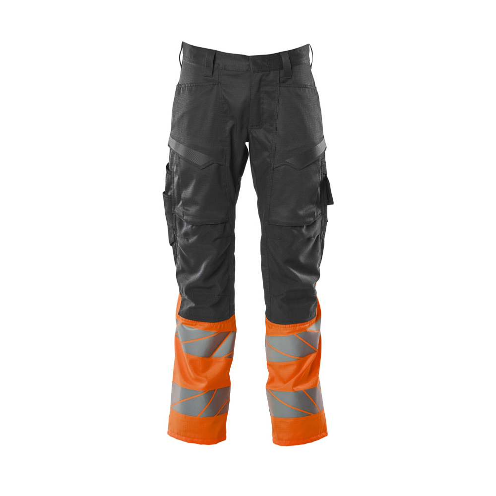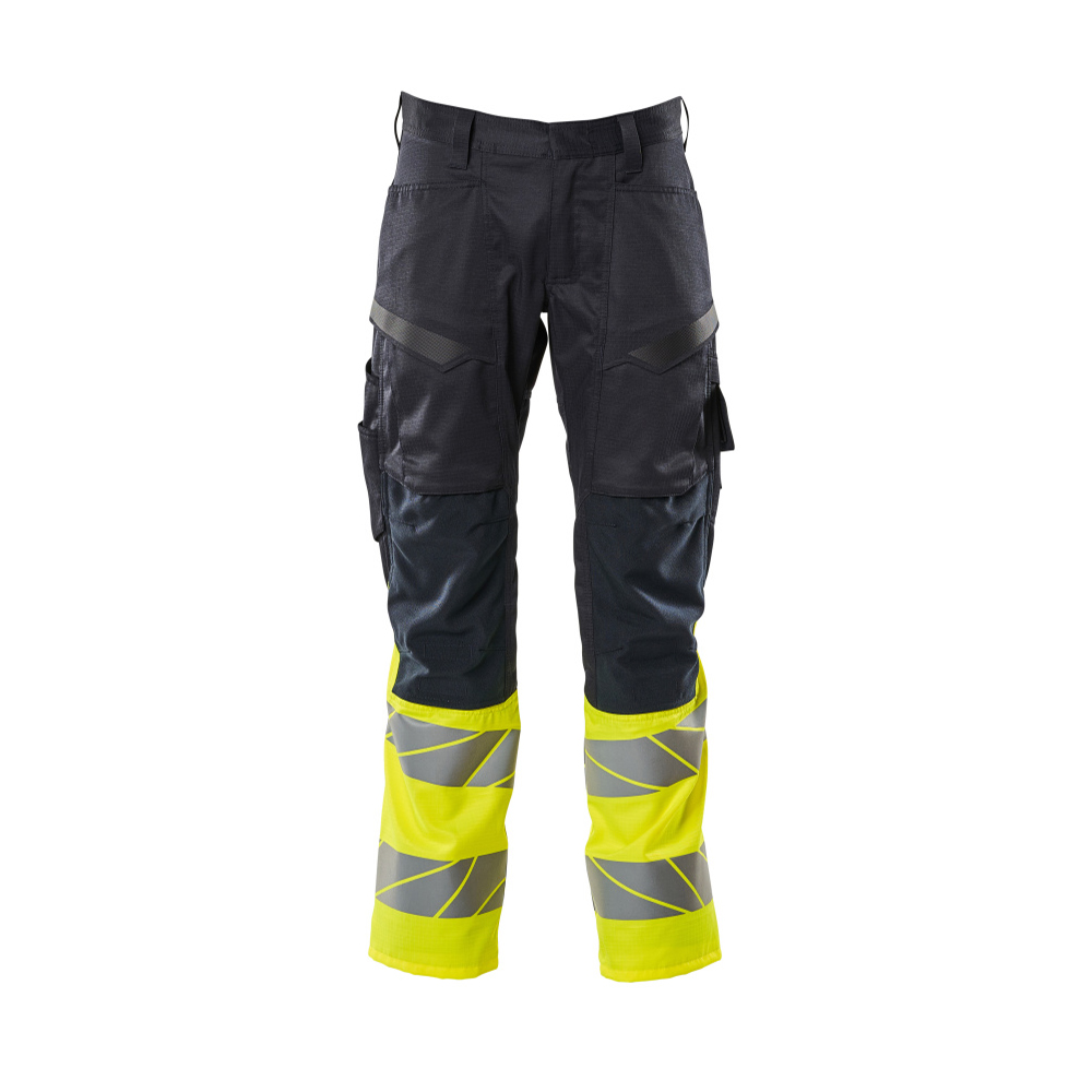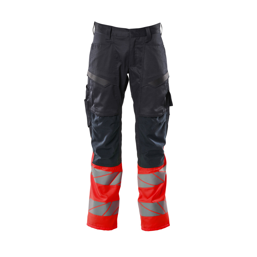 Fluorescerande kontrastfärg och med reflexer. Tvåfärgat. Delar av produkten är av stretchtyg. Kombination av lättviktigt tyg kvalitet 236 och ULTIMATE STRETCH kvalitet 511. Tvånålsstickningar på benen och i grenen. Låg midja. Knäppningen är dold. Byxbenen är ergonomiskt formade. Bältesstroppar. D-ring. Gylf med blixtlås. Fickor på framstycket. Bakfickor med förstärkningar. Hammarstroppen är justerbar. Tumstocksfickan är förstärkt. Fickor med lock på framsidan av låret. Justerbara knäfickor i slitstark CORDURA® (500 D). Enkel individuell justering av knäficka höjd. Benficka med telefonficka och lock med dolda tryckknappar. Med tryckeffekter. Förberedd för hängfickor 19450-126 som sätts fast med knappar. Innerbenslängden kan ökas med 3 cm genom att ta bort den invändiga röda sömmen vid foten. Vi rekommenderar 00718-100, 00418-100, 50454-916 & 20118-915 knäskydd till den här modellen. Samcertifierade med knäskyddstyp SHORT eller LONG enligt EN 14404.