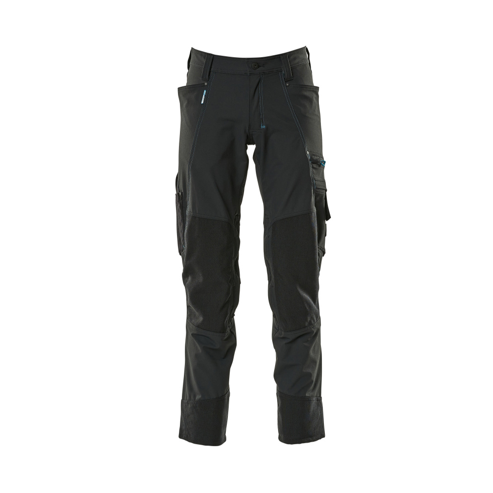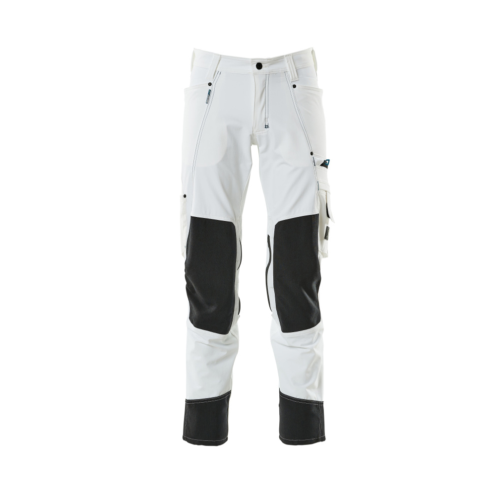 Stretchtyget är elastiskt åt alla håll, vilket ger en unik rörelsefrihet, där inget stramar eller irriterar. Det multifunktionella stretchtyget kombinerar låg vikt med mycket hög slitstyrka, samtidigt som det är vattenavvisande. Knäfickorna i slitstarkt CORDURA® är reglerbara, så att knäskydden får den optimala placeringen. Knäskydd sätts enkelt in från sidan med blixtlås, medan man har på sig byxorna. Effektiv ventilation vid knäområdet via blixtlås på sidan av benet. Som standard i tre olika benlängder så kan du välja den bästa passformen och den optimala placeringen av detaljer just för dig. För att uppnå största möjliga komfort rekommenderar vi att du väljer MASCOT® Waterloo knäskydd till den här modellen. Samcertifierade för användning med MASCOT:s knäskyddstyp, LONG.