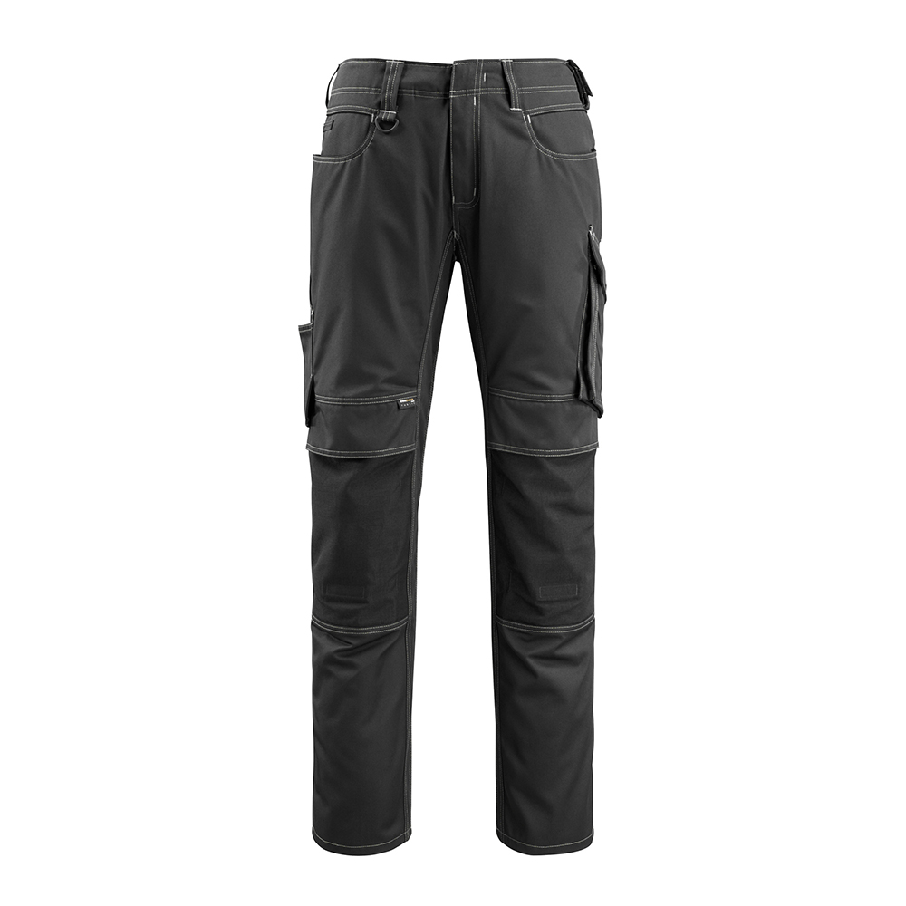 Utmärkt passform med formskurna ben och kilar på insidan av ben och skrev (med extra förstärkning). Slitstarka trenålssömmar på ben och i skrev förlänger produktens livslängd. Telefonficka integrerad i höger framficka. Av slitstark CORDURA® – med öppning för knäskydd från ovansidan och med lucka så att inte smuts samlas. Extra synlig för omgivningarna med hjälp av reflexeffekter. Samcertifierade för användning med MASCOT:s knäskyddstyp SHORT eller LONG, eftersom knäskyddsfickan kan höjdjusteras.