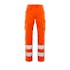 Fluorescerande och med reflexer. Har en vattenavvisande yta. Trenålsstickningar på benen och i grenen. Byxbenen är ergonomiskt formade. Gylf med blixtlås. D-ring. Fickor på framstycket. Bakfickor med lock. Benfickor med lock och dolda tryckknappar. Innerbenslängden kan ökas med 3 cm genom att ta bort den invändiga röda sömmen vid foten.