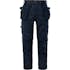 Hantverkarbyxa 241 GS25. Delvis återvunnet material / Mekanisk stretch / 2 löst hängande spikfickor helt i CORDURA®, den ena med 3 mindre fickor och verktygshällor, den andra med extra ficka / 2 framfickor / 2 rymliga CORDURA®-förstärkta bakfickor / Hälla för id-kort eller nycklar fram / Dubbel förstärkt grensöm / Hammarhank på båda sidorna / Höger benficka med tumstocksficka, pennficka samt knapp och hälla för kniv / Vänster benficka med tryckknapp, telefonficka och extra ficka med hälla för id-kortshållare / Knäfickor i CORDURA® med öppning utifrån, uppifrån / Knäskydden i knäfickorna kan höjdjusteras / CORDURA®-förstärkta benslut / Reflexdetaljer vid knä / Godkänd enligt EN 14404 tillsammans med knäskydd 124292 / OEKO-TEX®-certifierad.