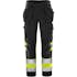 Varsel Green hantverkarbyxa 2640 GPLU, klass 1. Återvunnen polyester och ekologisk bomull / Miljödeklarerad (EPD) / Ribbstickade stretchpartier i midjan / Dold knapp fram / 2 löst hängande CORDURA®-förstärkta spikfickor – den ena med 3 mindre fickor och verktygshällor och den andra med extra ficka / 2 framfickor / 2 bakfickor / Dubbel förstärkt grensöm / Hammarhank / CORDURA®-förstärkt tumstocksficka med verktygsficka, pennficka samt knapp och hälla för kniv / Benficka med tryckknapp, ficka med lock och kardborrelås samt D-ring / Knäfickor i CORDURA® med öppning inifrån / Knäskydden i knäfickorna kan höjdjusteras / CORDURA®-förstärkning i benslut / Benlängden kan förlängas 5 cm / Benlängden kan förkortas 4 cm i C44-C70, C146-C160 och 2 cm i D84-D136 / Godkänd enligt EN ISO 20471 klass 1, EN 14404 tillsammans med knäskydd 124292 och EN 13758-2 UPF 40+ UV-skydd / Godkänd efter 50 tvättar / Testad för industritvätt enligt ISO 15797 / EPD reg.nr 3881 på environdec.com / OEKO-TEX®-certifierad.