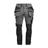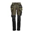 Smidig arbetsbyxa i 4-vägs stretch med partier av slitstarkt vävt tyg vid benslut, benfickor och hölsterfickor. Avtagbara hölsterfickor med zip-in funktion och med extrafack och förstärkt insida, kan stoppas ned i framfickorna. Stretchigt midjeband. Stolpfickor bak. Hammarhank. Tumstocksficka med knivhållare. Benficka med täckt blixtlås, ID-kortsfack och telefonfack. Förböjda knän med knäskyddsfickor i slitstark polyamid med 2 höjdnivåer för knäskydd inuti. Mesh i knävecken för ventilation. Byxbenet kan förlängas med 5 cm genom ett utvik i benslutet.