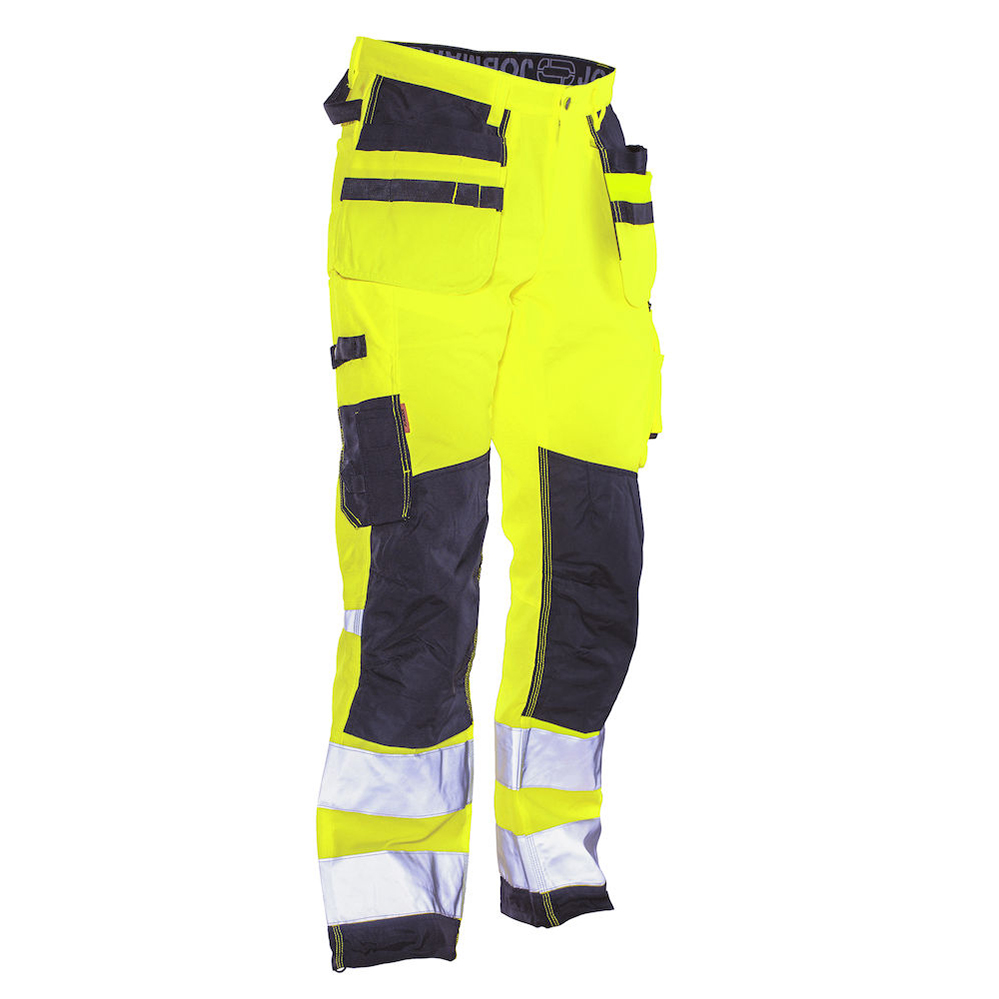 Slitstarka och sköna STAR-kvaliteten med mjuk insida, lång livslängd och snabbtorkande egenskaper. Rymliga hölsterfickor somkan stoppas ner i framfickorna. Bakfickor med förstärkt insida. Hammarhank. Extra hällor för bältet på de största storlekarna. Tumstocksficka med knivhållare. Benficka med blixtlås, telefonfack, ID-kortshållare och extrafack. Förböjda knän för optimal passform. Knäskyddsfickor i slitstark polyamid med reflexpasspoaler och två höjdnivåer för knäskydden. Förstärkt benslut i polyamid som inte absorberar fukt. Reflexpasspoal och dragsko i benslutet. Byxan finns även som dammodell, 2272.