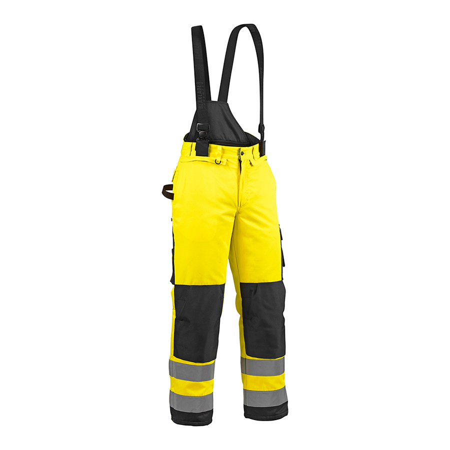 Varmfodrad vinterbyxa med hög synbarhet och tejpade sömmar i ett slitstarkt och tåligt material. Byxan finns i två olika material - 18851900 har slittåligt och vattenavvisande material och 18851977 har slittåligt, vatten- och vindtätt material. Byxan har bra ficklösningar som väl möter olika behov: insticksfickor fram med fleecefoder, bälgade bakfickor och bälgad benficka fram med lock, tumstocksficka och knäfickor i Cordura. Knäfickorna är anpassade för Blåkläders knäskydd och kan stängas nertill med kardborre, så snö inte kan komma in i knäfickan. Byxan har öppningsbart snölås i bensluten samt avtagbara hängslen. På byxan finns möjlighet att sätta spikfickor, artikel 2183, som sälj separat. Byxan är EN-certifierat för både varsel och kyla och är en extremt tålig funktionsbyxa.
