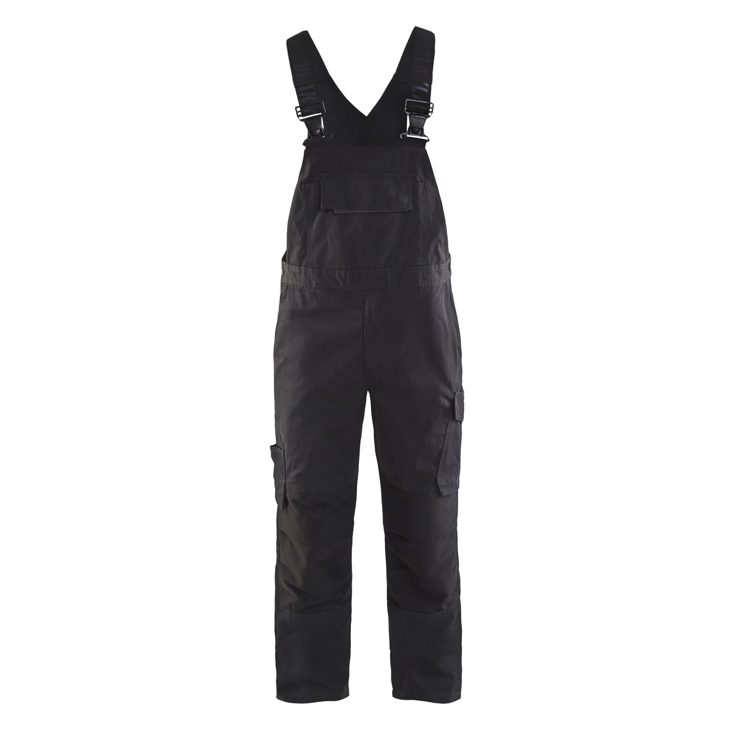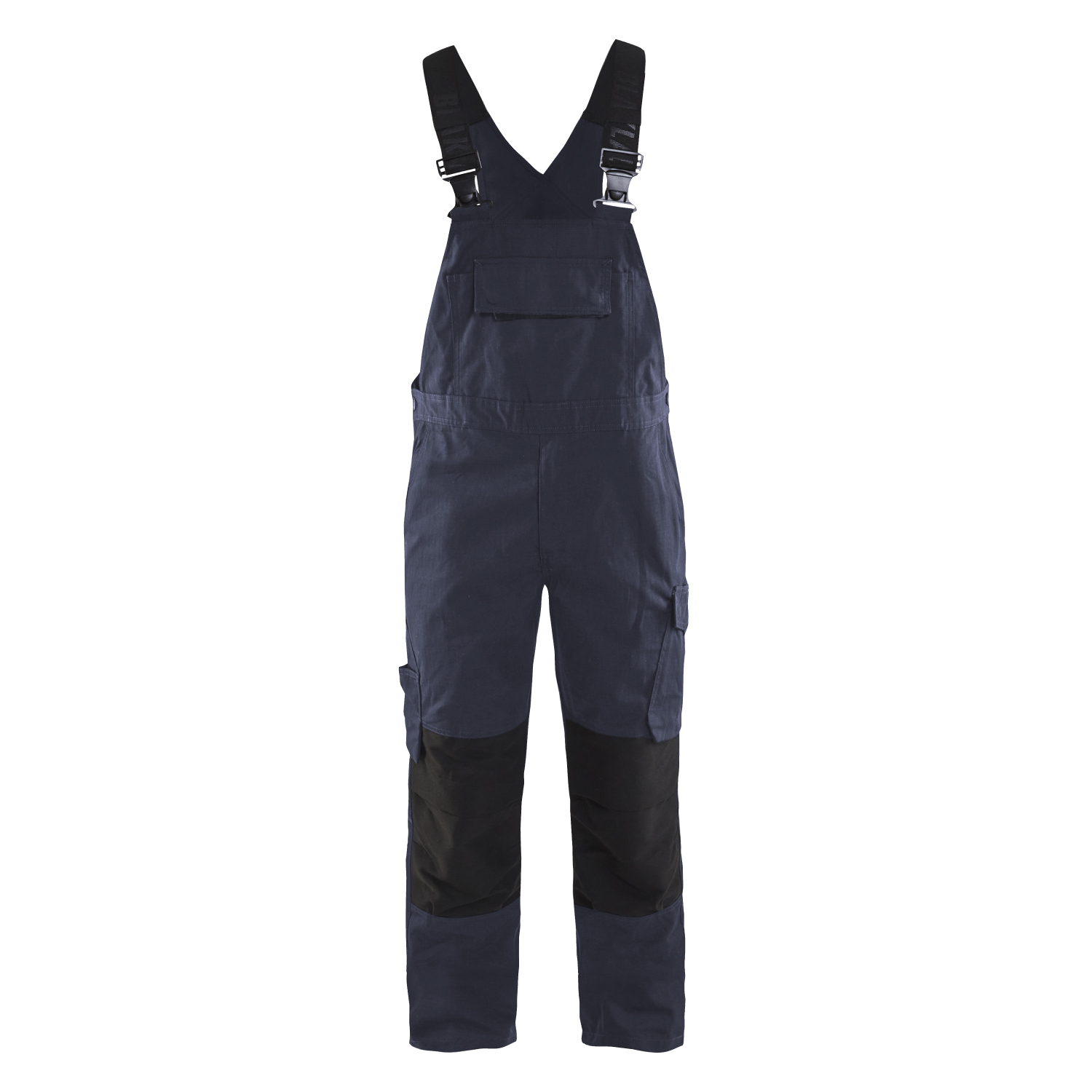 Slitstark och funktionell hängselbyxa från Blåkläder. Tillverkad i ripstop med hög bomullsandel som ger skön komfort samtidigt som tyget är smidigt och hållbart. Byxan har optimal passform tack vare stretchpaneler på vaderna och insidan av lår samt toppmatad knäficka i CORDURA®-stretch. Lämplig för serviceyrken, rekommenderas ej för tungt hantverk.