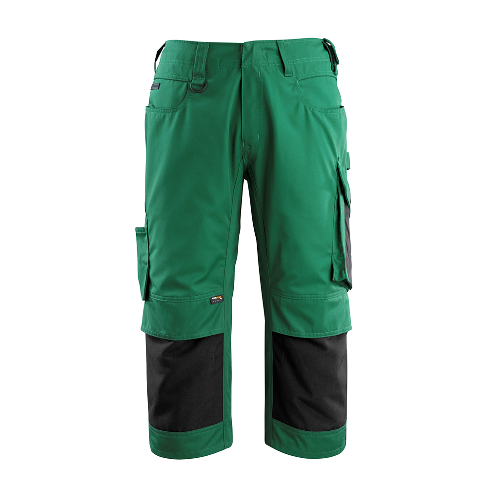 Slitstarka trenålssömmar på ben och i skrev förlänger produktens livslängd. Utmärkt passform med formskurna ben och kilar på insidan av ben och skrev (med extra förstärkning). Sned, rymlig benficka med lättillgänglig telefonficka. Av slitstark CORDURA® – med öppning för knäskydd från ovansidan och med lucka så att inte smuts samlas. Knäfickorna kan justeras så att knäskydden är placerade optimalt i förhållande till dina knän. Samcertifierade för användning med MASCOT:s knäskyddstyp, SHORT.