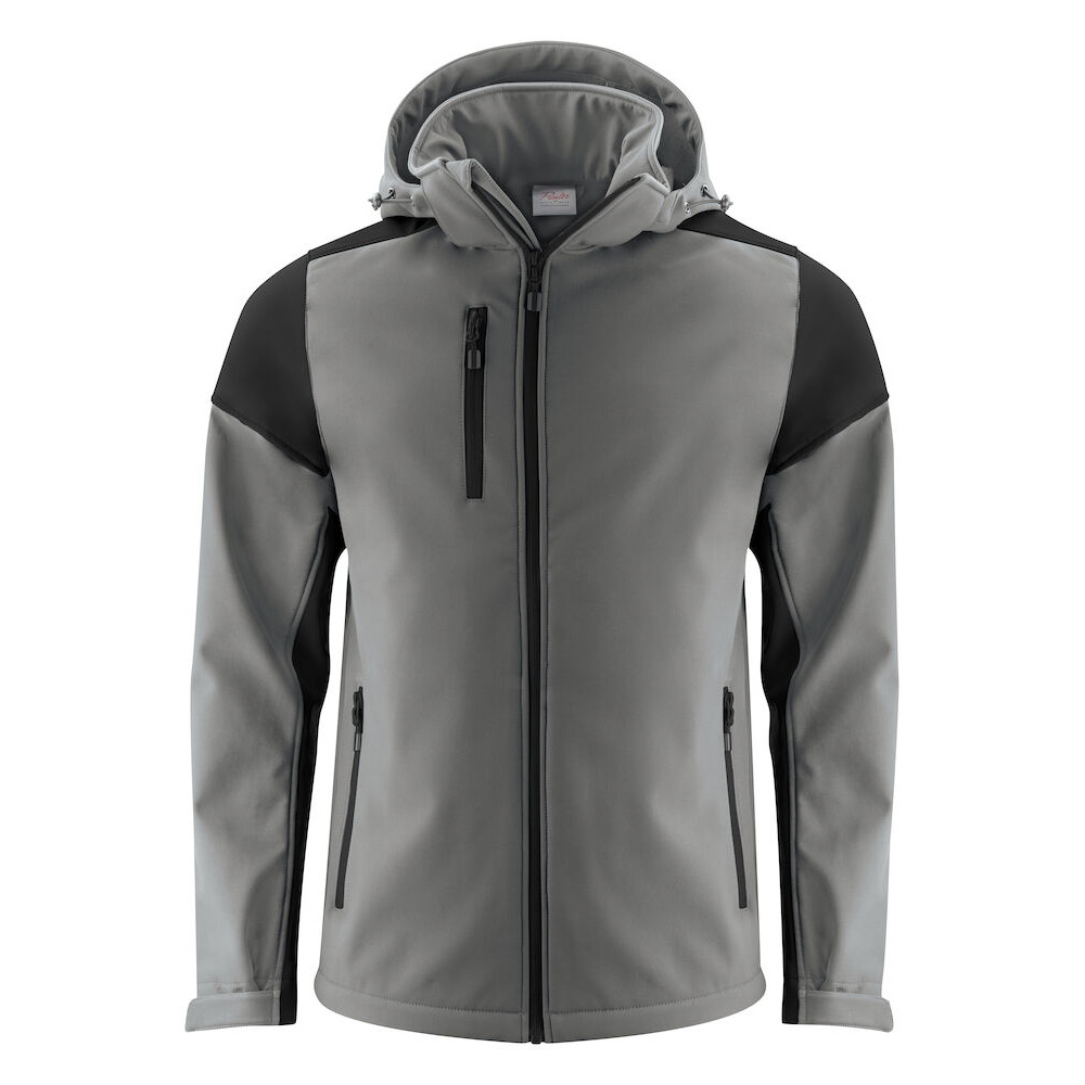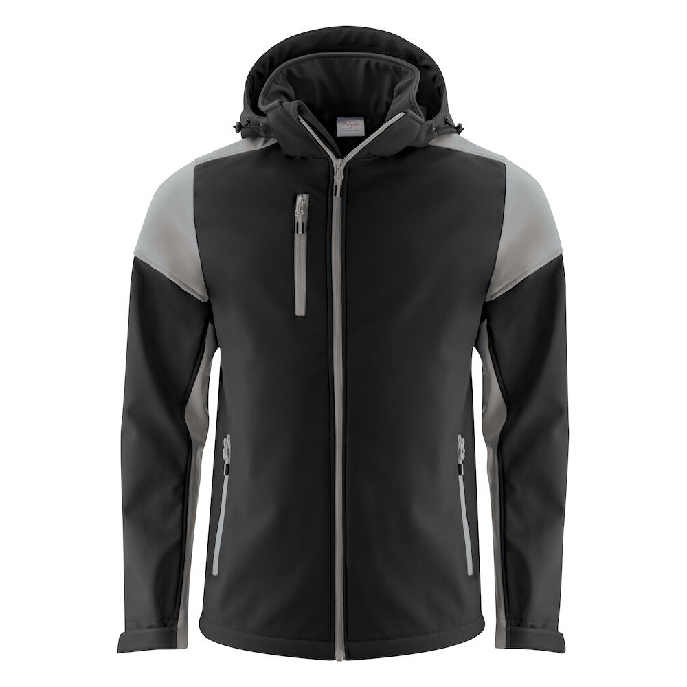 Tvåfärgad softshelljacka med avtagbar huva. Kontrasterande färg i dragkedja och zip-pullers. Kardborrejustering på ärm och elastisk snörning i huva och nederkant. Avrivbar nacketikett och separat storleksetikett. I vänster sidosöm finns tvättchipficka. Zip-pullers i fler färger säljs separat. Testad för industritvätt enigt ISO 15797. Oeko-Tex 100-certifierad och levereras i biobaserad, komposterbar påse.