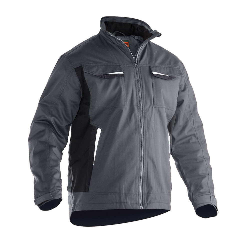 Quiltfodrad servicejacka i lättskött polyester/bomull. Två bröstfickor med kardborrestängning, D-ring i vänster bröstficka för ID-kort. Borstad mjuk polyester i kragen. Framfickor med blixtlås. Två innerfickor, en stor för dokument och en för mobiltelefonen. Reglerbart ärmslut och nederkant. Reflexer framtill på ficklock. Förlängd i rygg med reflexpasspoal.