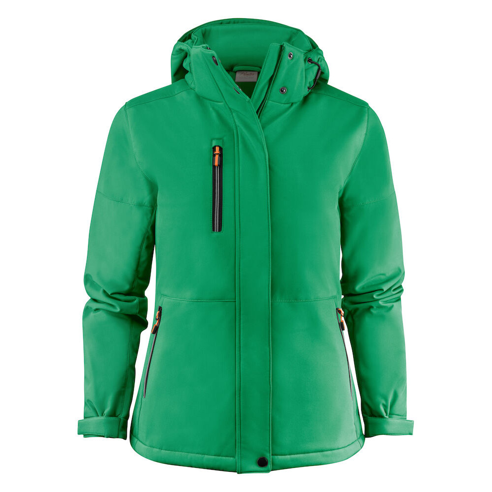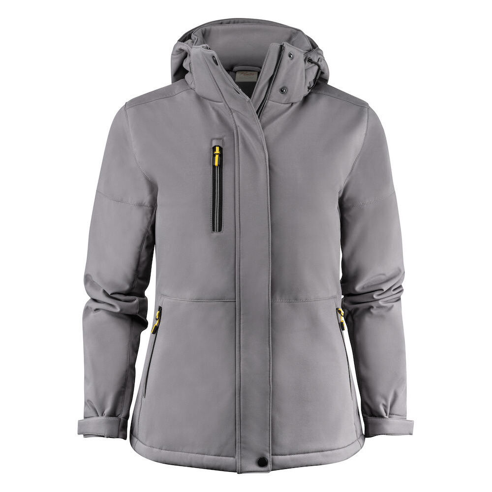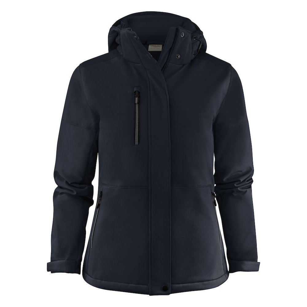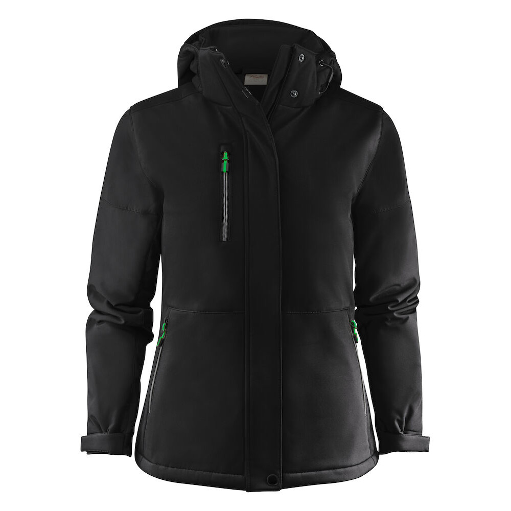 Vadderad softshelljacka med avtagbar huva. Blixtlåsskydd med tryckknappar mitt fram. Dragsko i huva och nederkant samt kardborrejustering i ärmavslut. Två innerfickor med dragkedja. Reflekterande passpoal i nedre ryggen. Avrivbar nacketikett och separat storleksetikett. Tvättchipficka vid inre vänstra sidosömmen. Dragkedja i kontrastfärg. Zip pullers i flera färger säljs separat. Öko-Tex 100-certifierad. Förpackad i en biobaserad, komposterbar påse.