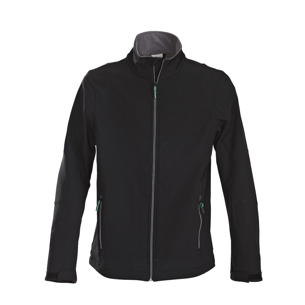 Softshelljacka i boundat material med stretch. Tvåfärgad dragkedja framtill och på fickor. Justerbara ärmavslut och dragsko nedtill. Möjligt att köpa till dragkläppar i andra färgställningar som matchar kundens företagslogga.