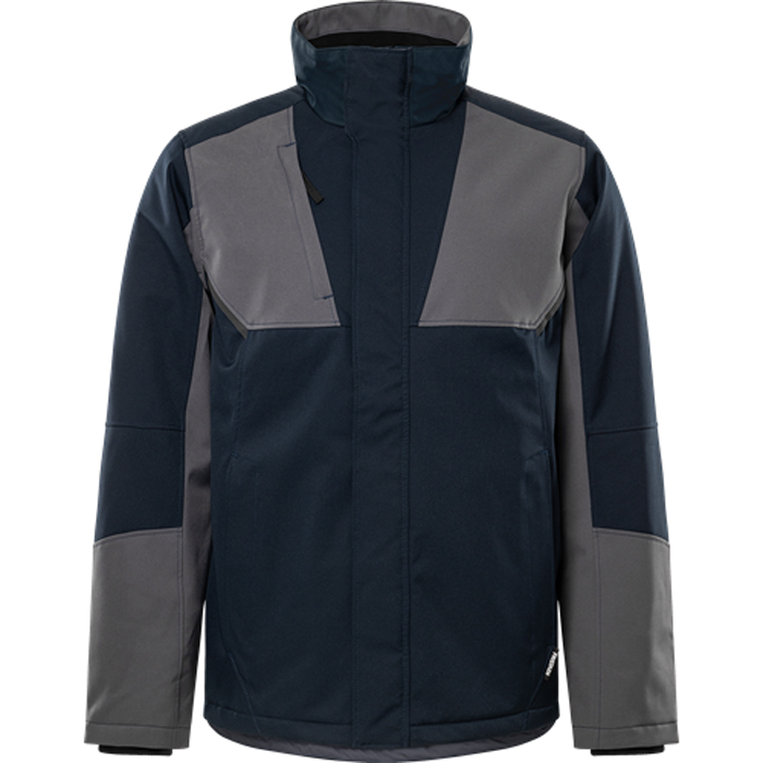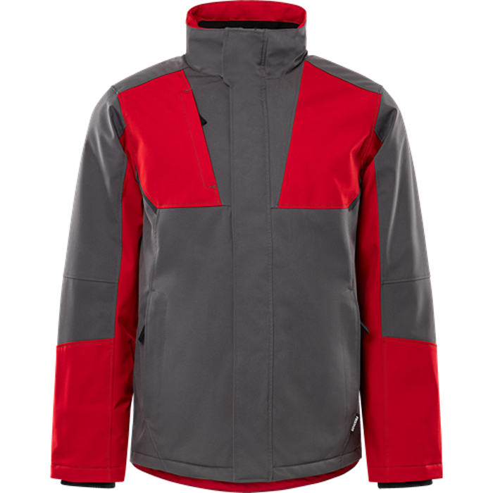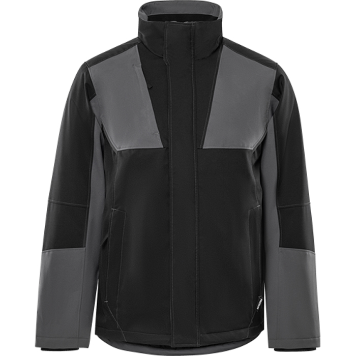Softshell vinterjacka stretch 4931 GSW. Delvis återvunnet material / Vindtät och vattenavvisande med andasfunktion / Material med 4-vägsstretch / Quiltfoder / Fleecefodrad krage / Dragkedja ända upp i kragen under frontslå med tryckknappar / Bröstficka med dold dragkedja / 2 framfickor med dold dragkedja / Innerficka / Förböjda ärmar / Invändig ribbmudd / Dragsko i nederkant / Förlängd rygg / Mörkgrå reflexdetaljer / Dragkedja i foder för transfer / Vattenpelare > 3.000 mm / Godkänd enligt EN 342 / OEKO-TEX®-certifierad.