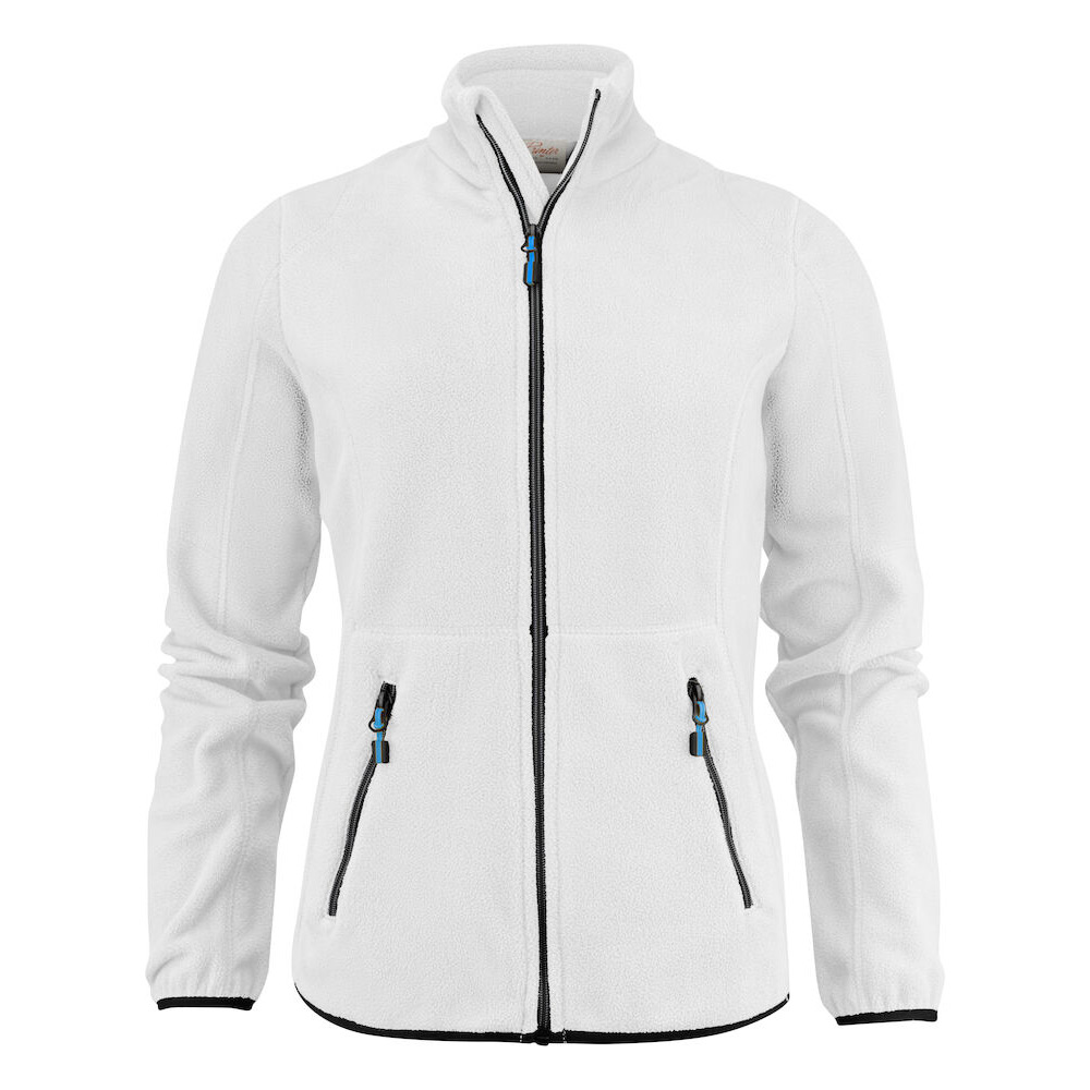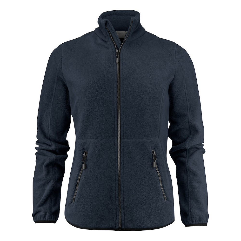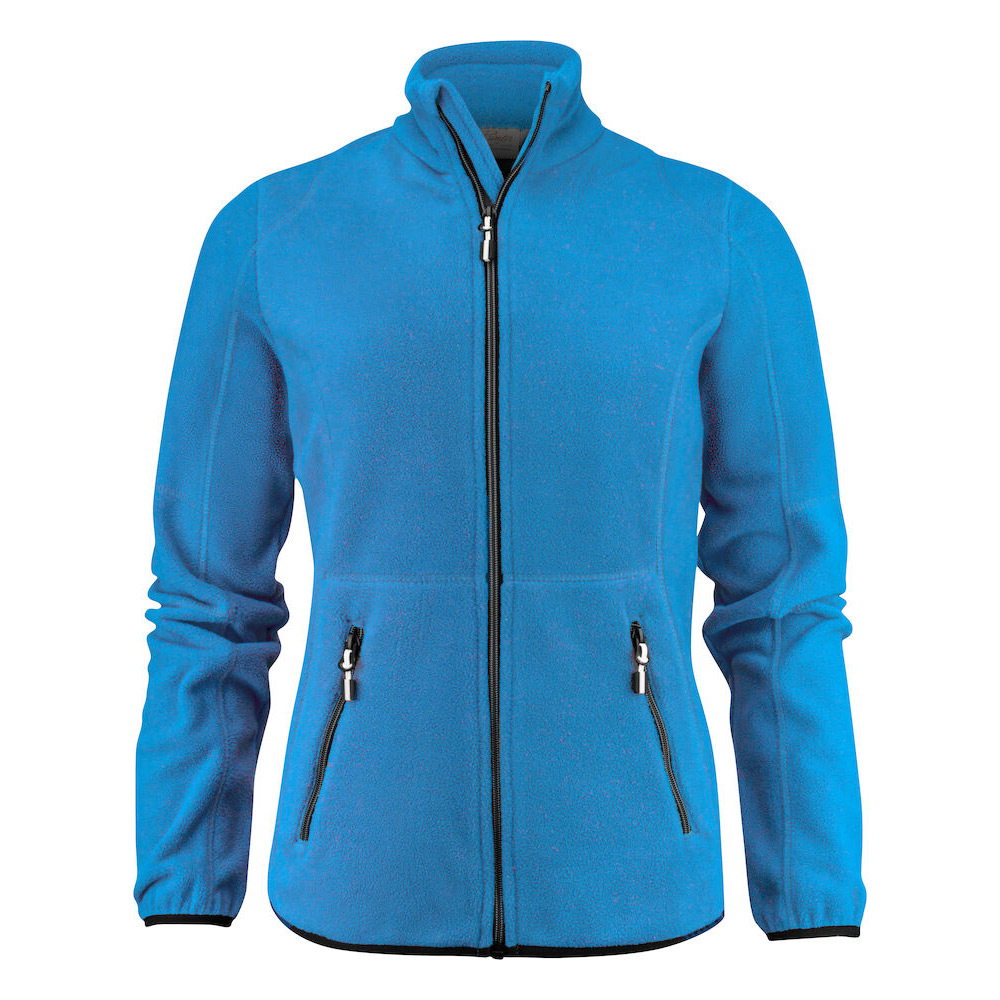Fleecejacka dam med tvåfärgade dragkedjor framtill och på fickor. Dekorerad med flatlocksömmar. Feminin passform. Möjligt att köpa till dragkläppar i andra färgställningar som matchar kundens företagslogga.