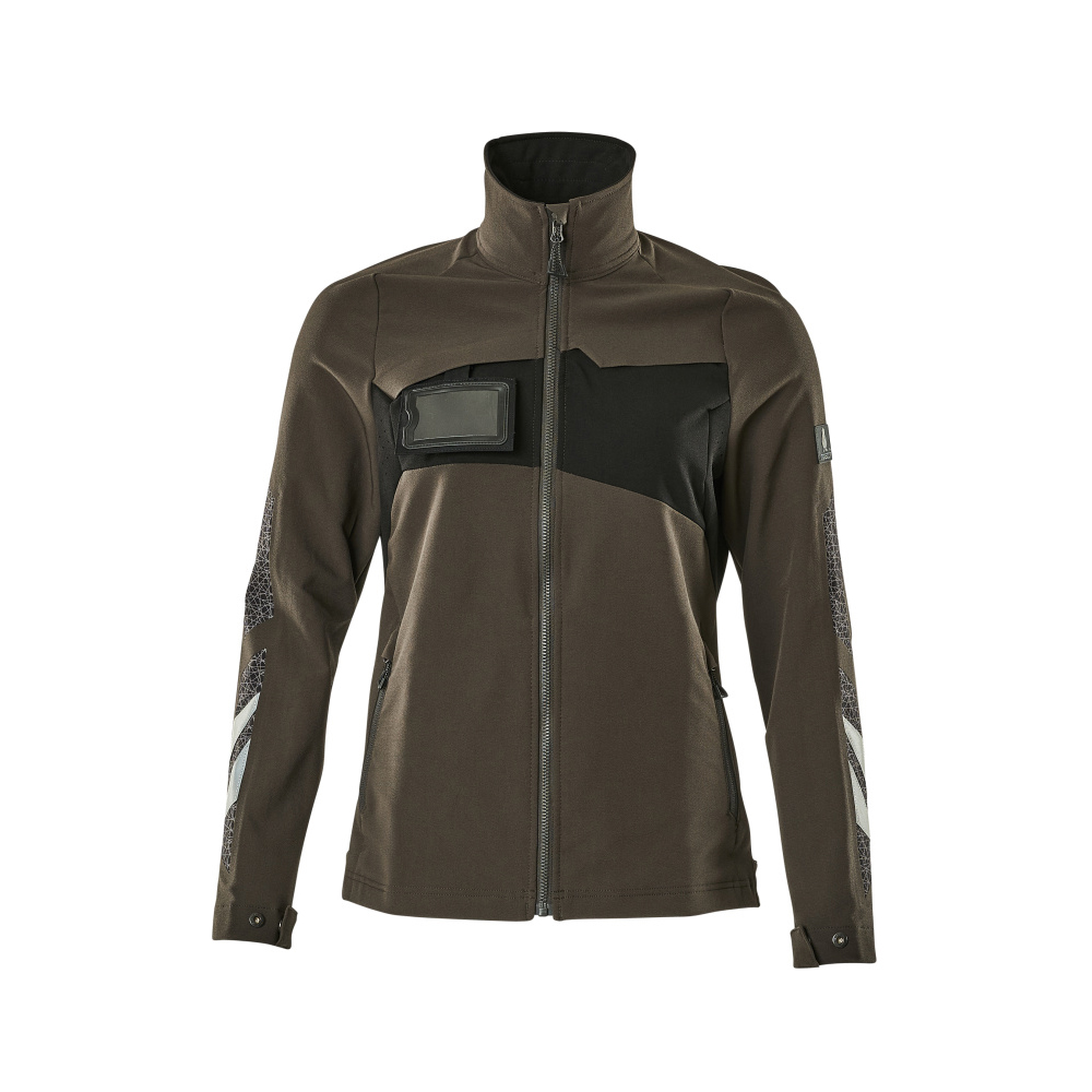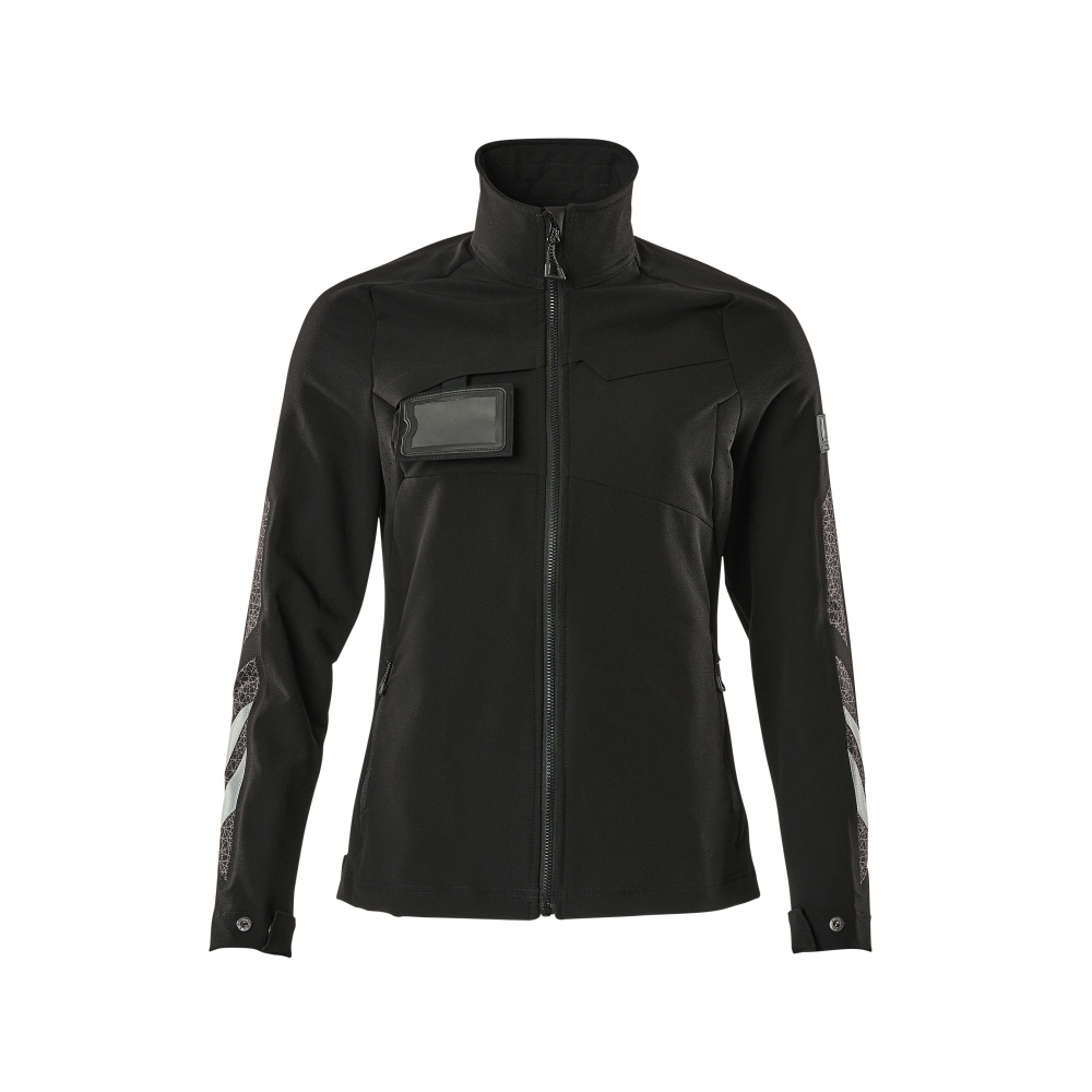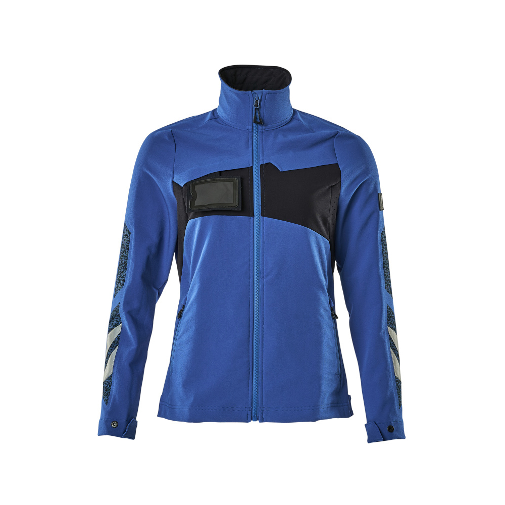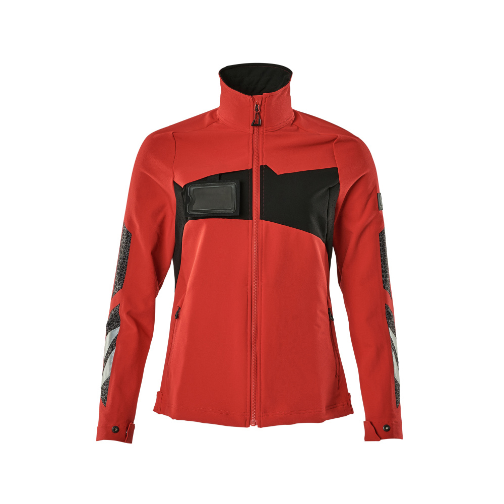 Speciellt designat och figursytt för kvinnor. Stretchtyget är elastiskt åt alla håll, vilket ger en unik rörelsefrihet, där inget stramar eller irriterar. Det multifunktionella stretchtyget kombinerar låg vikt med mycket hög slitstyrka, samtidigt som det är vattenavvisande. Tyget tål industritvätt. Knäppning med blixtlås och invändig vindflik så att vinden stängs ute. Extra synlig för omgivningarna med hjälp av reflexeffekter.