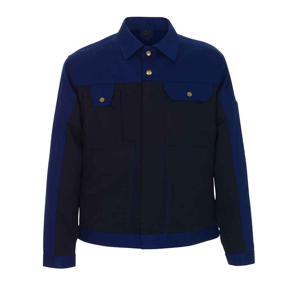 Tvåfärgat. Tvånålsstickningar på ärmar och trenålsstickningar i sidan. Stängning med blixtlås och vindskydd med tryckknappar. Bröstficka med lock och tryckknapp. Telefonbröstficka med justerbart lock och pennficka. Fickor på framstycket. Innerficka med blixtlås. Ärmficka med kardborreband. Linning med tryckknappjustering. Manschetter med tryckknappsjustering. Veck i ryggen. Ventilation under ärmarna.