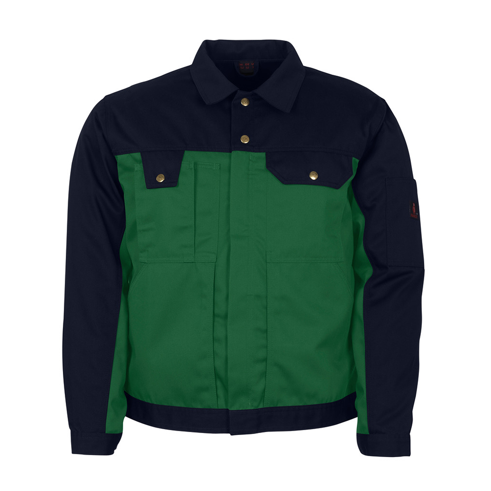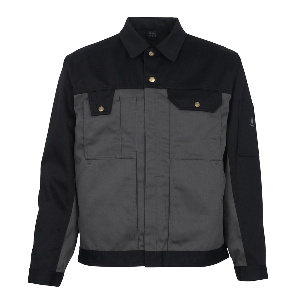 Tvåfärgat. Tvånålsstickningar på ärmar och trenålsstickningar i sidan. Stängning med blixtlås och vindskydd med tryckknappar. Bröstficka med lock och tryckknapp. Telefonbröstficka med justerbart lock och pennficka. Fickor på framstycket. Innerficka med blixtlås. Ärmficka med kardborreband. Linning med tryckknappjustering. Manschetter med tryckknappsjustering. Veck i ryggen. Ventilation under ärmarna.